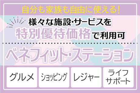 【保険制度】 雇用保険、労災保険、健康保険、厚生年金 待遇・福利厚生 【福利厚生】 ・社会保険制度 ・交通費全額支給 ・車、バイク通勤OK ・制服貸与 ・食堂あり ・休憩スペースあり(冷蔵庫・レンジ・自販機あり) ・冷暖房完備 ・喫煙室あり ・結婚祝金、出産祝金、扶養こども手当、入学祝金、退職金制度などの福利厚生が充実(規定) ・紹介キャンペーン ※ご紹介くださった方1名につき5万円を進呈(規定) 【ベネフィット・ステーションの利用が可能】 ベネフィット・ステーションとは、 様々なシーンでご利用いただける 総合型福利厚生サービスです。 映画鑑賞やホテルディナー、宿泊施設 などの余暇・レジャー関連をはじめ、 日常で使えるフィットネスや 育児・介護支援、ライフサポートなど 約140万件以上の幅広いメニューを お得な価格で利用できます。 <サービス例> ・全国40,000以上の宿泊施設 ・全国30,000店舗以上の飲食店 ・全国約7,700ヶ所のスポーツクラブ など スタッフさんはもちろん、ご家族の方もお好きなだけ利用できます。