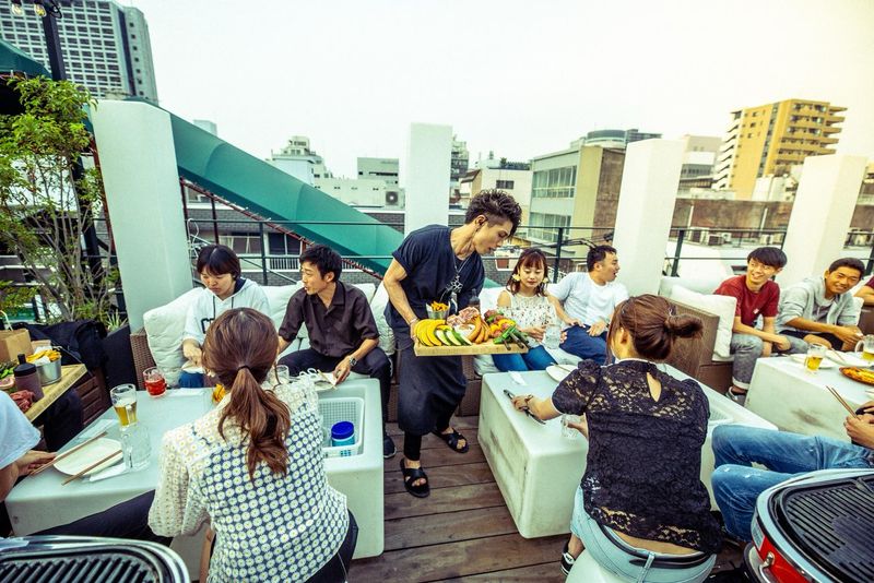 職場環境 ★4月~10月までの夏季限定アルバイト★ 男女比6:4 パワフルな男性中心に活躍中! 圧倒的な解放感のルーフトップBBQで 毎年10名~15名学生・フリーターSTAFFを中心に活躍中です◎!*。/ 喫煙所:喫煙所あり(屋外)