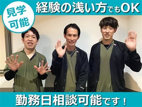 <管理者からメッセージ> 「この施設なら大丈夫」と安心して利用いただけるケアの実現に向け、皆で報告・相談・検討して協力しながら、お互いに向上していける職場づくりを心がけています。人に対する思いやりが身につき成長できる当事業所で働きませんか? 急な欠員対応など、ユニットの手が足りないときにはすぐに対応できるよう心がけています。明るくて楽しい職場です。ぜひ一度見学に来てください! <スタッフに聞きました> 多様な部署を持つ法人に惹かれ新卒で入職。現在は若手スタッフのリーダー的存在として、コミュニケーションを大切にしながら現場を支える、入職4年目のスタッフにお話を聞きました。 Q.現在の職場へ入職を決めた理由を教えてください 誠仁会には多様な部署があり、様々な経験が積めると思ったからです。自宅から通いやすかったことも理由のひとつです。また、学生時代の友人がこちらで働いており、入職前に職場の雰囲気などを聞いて、安心して働けそうだと思えたこともきっかけになりました。 Q. 職場の雰囲気や新しく入職された方へのサポート体制について教えてください 職場の雰囲気は一言でいうと「和気あいあい」です。私が新卒で入ったばかりの頃、慣れない仕事に戸惑うこともあったのですが、先輩方が相談にのってくれたり、アドバイスをくれたおかげで、頑張ることができました。 教育体制も整っており、新卒で入職される方には入職後1年間は先輩がついてくれ、サポートをしてくれます。中途の方に対しても、これまでの経験を尊重しつつ、仕事の流れをスムーズに掴めるように、みんなで声を掛け合い、協力しながら仕事をしています。 Q. こちらの事業所の魅力はどういったところでしょうか? こちらでは、入所、通所、訪問など複数の部署があり、色々な経験を積めることが魅力の一つです。私自身、入職後は通所と入所の両方を経験させていただき、違った視点でリハビリについて考えることができるようになりました。一つのことにとらわれず成長したい方にはオススメの職場です。 【求職者さんへメッセージ】 僕ら自身がまずは楽しい職場を作り、楽しくリハビリすることを心がけています。どうすればより良いリハビリができるのか、チーム一丸となって考えられるのもこの職場の魅力です。困った時には相談できる先輩方もいますので、安心してくださいね。ご利用者様の在宅復帰という目標に向かって、切磋琢磨しながら一緒に成長できる仲間を待っています! 見学やご質問も受けつけていますのでお気軽にお問い合わせください! ・本エントリーの前に話を聞いてみたい! ・働く時間について質問したいことがある! ・「今すぐ働きたい!」や「来年度から働きたい!」などなど ご不明な点があればお気軽にご相談ください。 また、職場の雰囲気を見てから決めたいという方は 職場見学も実施していますのでお気軽にお問い合わせください♪