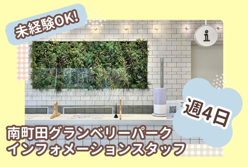 仕事内容 ✨注目ポイント✨ ⭐勤務地はこんな場所♪  ̄ ̄ ̄ ̄ ̄ ̄ ̄ ̄ ̄ ̄ ̄ ̄ ̄ 駅直結 <南町田グランベリーパーク>で インフォメーションのお仕事◎ ご近所の方々から、 海外の方まで幅広く愛される あたたかい雰囲気のショッピングモールです。 館内に2カ所あるインフォメーション。 それぞれに特徴があります。 日によって勤務する場所が変わりますので 毎回新鮮な気分でお仕事♪ ⭐特別仕様の制服あり◎  ̄ ̄ ̄ ̄ ̄ ̄ ̄ ̄ ̄ ̄ ̄ ̄ ̄ 着用いただく制服は 誰もが知るあのブランドが 手がけた完全オリジナル。 アイボリーのブラウスと キャメルカラーのスカートが 一体になった、ワンピース型の制服です。 (秋冬シーズンの場合) 可愛さと着心地の良さを両立していて スタッフからも大好評♪ ⭐未経験スタートOK  ̄ ̄ ̄ ̄ ̄ ̄ ̄ ̄ ̄ ̄ ̄ ̄ ̄ 未経験から活躍中の先輩スタッフもたくさん◎ 映像での研修 ↓ 座学や自習の時間 ↓ 館内放送の練習 ↓ OJT ↓ ✨デビュー✨ 研修は1カ月程かけて じっくり行いますので、安心してくださいね♪ ⭐身体に無理なくお仕事  ̄ ̄ ̄ ̄ ̄ ̄ ̄ ̄ ̄ ̄ ̄ ̄ ̄ 週4日・社保加入の働き方。 「週5日はハードだな…」 「自宅から近い場所で無理なく働きたい」 そんな方におススメのお仕事です◎ ✨お仕事内容✨ \マニュアルありで安心/ ・お客様のご対応(店舗場所のご案内など) ・忘れ物の受付 ・迷子の保護 ・電話対応 ・ベビーカーの貸し出し ・店内放送 ・その他事務作業 (日報の入力等でPCを使用します) ※改正職安法で追加された明示事項等は 面接時にお伝えします