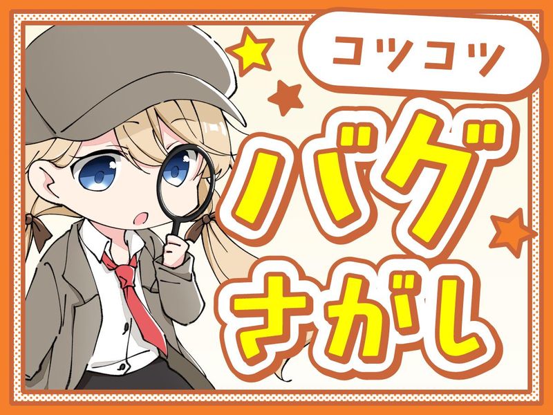 求めている人材 *未経験・初心者OK *PCスキルは両手でタイピングできる程度 *守秘義務を守れる方 *平日週3日以上作業可能な方 ・学歴不問・未経験者歓迎 ・第二新卒歓迎・ブランクOK ・経験者歓迎・経験者・有資格者歓迎 ・フリーター歓迎・主婦・主夫歓迎 ・オフィスワーク未経験な方歓迎 <こんな方にぜひ> ・自他ともに認めるゲーマー ・間違い探しが得意 ・ゲームの集中力には自信がある ・乙女ゲームにハマっている ・ゲーム作りの裏側が見たい ・レビューなど文章を書くのが得意 ・アニメやマンガも好き ・色んなジャンルに興味が持てる ・3D酔いには強い ・野球・サッカーなどスポーツゲームが好き ・テストエンジニアを目指している ・カードゲームが好き <以下でお探しの方にも!> 珍しいアルバイトや、面白いバイト、テスター副業、Wワーク、短期バイトをお探しの方、【業務請負契約】という働き方をしてみませんか?ゲームテスター・ゲームデバッグが未経験の方も大歓迎!将来ゲーム会社へ就職を目指している方もぜひ!