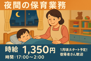 夜間保育・ブランク歓迎・女性活躍中・丁寧な指導で安心