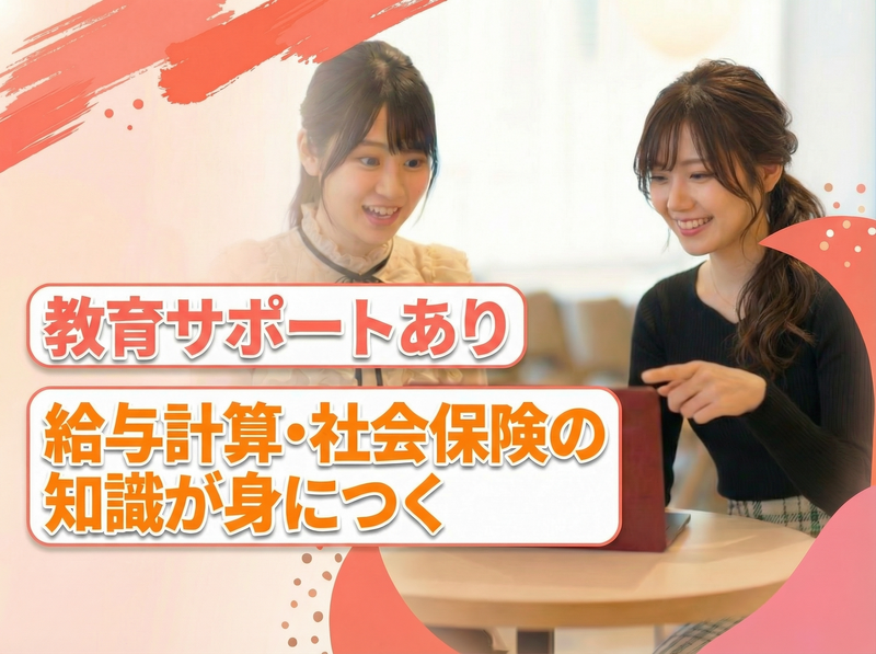 求めている人材 《 給与計算の経験者限定! 》 人事労務、人事総務、士業補助などで 給与計算経験がある方の限定採用です! (大卒以上/正確に電卓をたたける方) ●20代・30代が中心に活躍中! ●社会保険労務士事務所での 就業が初めての方も大歓迎 ●第二新卒歓迎/既卒歓迎 ●社労士を目指している方も歓迎 ●資格取得や勉強のサポートあり! ――――――――――――― 《 こんな人は大歓迎です! 》 ●給与計算のスキルを活かしたい ●社労士事務所で専門知識を磨きたい ●将来的には社労士を目指したい ●人とのコミュニケーションが好き ●まわりと確認や相談をしながら 一つひとつ業務を進めたい といった気質や志向ある方は特に歓迎です!