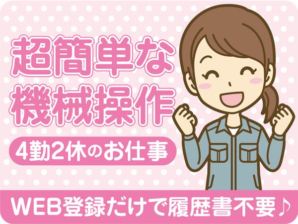仕事内容 印刷機械の操作業務、印刷物の仕分け作業 女性活躍中の職場なので力仕事は一切なし! 機械の操作も超カンタンなので安心! ・・ー・・+・・ー・・+・・ー・・ \\”ココ”がおすすめ // ❖超簡単な機械操作❖  ̄ ̄ ̄ ̄ ̄ ̄ ̄ ̄ ̄ 力仕事や難しい操作はありません◎ はじめは丁寧にお教えしますね! ❖4勤2休のお仕事❖  ̄ ̄ ̄ ̄ ̄ ̄ ̄ ̄ ̄ ̄ ̄ 日勤と夜勤の交代制なので、 市役所に行く用事などを夜勤の時に済まして、 日勤のときは、夜に友達とご飯に行く など、過ごし方は自由♪ ❖履歴書不要!❖  ̄ ̄ ̄ ̄ ̄ ̄ ̄ ̄ ̄ 用意が面倒な履歴書も必要ありません! WEB登録だけで働けちゃいます◎ \スタッフの声 / ❖40代男性 派遣で働くのは初めてでしたが、 みんなすごく親切で、わからないことや困っていると すぐに声をかけてくれて助かりましたし、 すぐに仕事を覚えて慣れることができました!・・ー・・+・・ー・・+・・ー・・ \\面接なしで働ける!?// お電話で簡単に経歴、ご経験をお聞きした上でお仕事をご紹介! なので、面接や履歴書は不要です◎ 就業後は… 1週間後にご状況やお困りごとがないか確認しますので、なんでもご相談くださいね! 更新のタイミングでも実際にお会いして面談を行います。 基本的に担当者が変わることはないのでご安心くださいね!