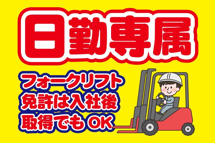 資格・経験 未経験者歓迎、学歴不問・資格不問 フォークリフトの資格・運搬経験がある方も活躍中 ※入社後の取得もOKです