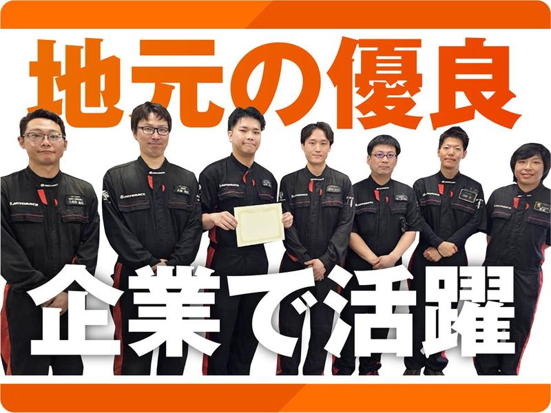 【保険制度】 雇用保険、労災保険、健康保険、厚生年金 待遇・福利厚生 【福利厚生】 《各種手当が充実》 *資格手当(検査員4万円、2級整備士3万円、3級整備士1万円) *家族手当(配偶者1.5万円、第一子3000円※第二子以降2000円) *残業手当 《その他》 *社員割引(カー用品をお得に購入可) *国家資格取得支援(全額会社負担) *社員旅行(2年に1回) *旅行積立 *共済会負担金 *制服貸与 *車・バイク・自転車通勤可 *駐車場・駐輪場あり - 《採用担当より》 カー用品最大手の 安定性やブランド力に加え、 当社独自のサービス向上への 取り組みもあり、 おかげさまで業績は好調! 新しい仲間を 正社員として募集します。 当社がお客様の満足と同じくらい 大切にしているのが 「働き手の満足」です。 誰もが健康で生き生きと 輝ける会社を目指して これからも成長し続けます。 《先輩より/22歳男性・2年目》 前職はガソリンスタンドスタッフ。 大好きな車ともっと関わりたくて 転職してきたのですが 働き始めて分かったことが… ◆明確な評価を基に努力を給与に反映 ◆休日も多くリフレッシュできる ◆会社が社員の成長を後押し と、メリットの多い会社だということ! この間、3級整備士に合格したので 今は2級を目指して勉強中です!