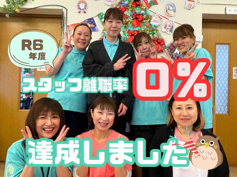 職場環境 【離職率0%を達成!!】 人柄を第一に考える採用の基準を設けております。その結果、令和6年度の離職率は『0%』を達成しました。 喫煙所:なし(敷地内全て禁煙)
