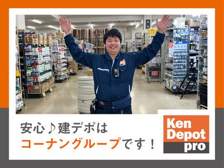 仕事内容 実際にお願いしたい仕事内容 建築・建設の会員制総合卸売「建デポ」での販売業務です。 【具体的には…】 ●接客/商品のお取り寄せ、商品のご説明、売場のご案内、レジ、積み込みのお手伝いなど。 ※お客様から店舗に置いていない商品の注文を受けますので発注をお願いします。 ●売場管理/商品の在庫管理や棚作りなど。在庫を切らさず、また、 見つけやすくわかりやすい陳列を心がけることが大切です。 ●マネジメント/アルバイト・パートスタッフさんの管理や教育、 育成も大切なお仕事です。少しずつ慣れていきましょう。 【建デポの接客の特徴】 幅広いお客様を対象とした小売店やホームセンターとは異なり、 お客様は、建築・建設に携わるプロの方々です。 求められる知識の幅は広いですが、だからこそ、 お客様のお困りごとを一緒に解決できた時の喜びは大きいです。 お客様の喜ぶ姿が自分のことのように嬉しい、 そんなふうに思える社員が活躍しています。 また、部門ごとに専任の担当者として売り場に立つため、 全ての商品を把握する必要はありません。 ※専門性に特化しやすく、覚えやすいです。 じっくり学んでいけば大丈夫です! プロの現場を支える、プロがいる。 建デポは、建築・建設のプロである法人や 個人事業主を対象とした「会員制の総合建材卸店」です。 そのため、一般の方のご利用はご遠慮いただいています。 プロ向けの店舗ということもあり、 資材・工具・住宅設備など、あらゆる建築・ 建設現場で必要なものが揃っています。 その数、実に30,000アイテム。 豊富な種類のプロ向け商品を、 卸値価格でご提供しています。 現場作業の「困った」をワンストップで解決する、 建デポはそんなお店です。 ちなみに、東証プライム上場「コーナングループ」の一員。 企業としての安定性も、お墨付きです。 未経験からプロを目指せる手厚いサポート体制があります! 「専門性が高いお店だから、最初は難しそう…」と感じる方もいるかもしれません。 でも、大丈夫です! あなたの「やってみたい!」を全力で応援する手厚い研修制度と、 未経験からスタートした先輩たちがたくさん活躍する環境があります。 入社後はまず、2日間の座学研修でレジ打ちなど業務の基礎をじっくり習得。 店舗配属後も、約半年間は先輩がマンツーマンで実務をサポート! 分からないことがあればすぐに質問できる環境です。 さらに、工具の名前を覚えるためのメーカー研修や、オンラインで学べる勉強会も定期的に開催! 工具や建材の知識が全くない方でも、段階的に専門知識を身につけられます。 「工務店さんや大工さんといったプロの方に、専門的なことを聞かれたらどうしよう…」という不安があるのも当然です。 でも研修や日々の業務を通して自然と知識が身につき、 自信を持ってお客様と会話できるようになりますよ。 心配はいりません! 「健康経営優良法人2025」&「ホワイト企業」認定! 2025年3月10日、経済産業省と日本健康会議が実施する 「健康経営優良法人(中小規模法人部門)」に認定されました。 これは、従業員の皆さんの健康管理・健康増進を経営的な視点で考え、 戦略的に実践する「健康経営」に優れた企業を法人を認定する、というものです。 さらに、一般財団法人 日本次世代企業普及機構(通称:ホワイト財団)より 「次世代に残すべき素晴らしい企業」=「ホワイト企業」として、 最高位の「ホワイト企業認定PLATINUM」をいただいています。 名実ともに、安心して働ける会社です。 \新店舗オープン!/ 今回は、新店舗の立ち上げメンバーとして、正社員を募集します。 あなたも私たちと一緒に新しいお店をゼロから創ってみませんか? \おすすめポイント/ ●異動は特定のエリア内のみなのでプライベートと両立しやすい! ●地域貢献や顧客との関係性構築ができて顧客とじっくり向き合える ●慣れ親しんだ地域で働くことで、通勤の負担も少なく働きやすい \スタッフインタビュー/ おじいちゃんは大工。 自分ももともとものづくりが好きで、 大工をやっていたこともあります。 建デポを選んだのは、 そんな知識を活かせると思ったからでした。 入社していちばん驚いたのが、 職人気質なお客様が多いイメージだったんですが、 ぜんぜん違ったことです。とにかく優しい方が多くて、 これはいい意味でギャップがありましたね。 一度、あるお客様に誤った商品説明を してしまったことがあったんです。 自分自身、落ち込むような内容だったんですが、 その方は怒るどころか、逆に慰めてくださって。 本当に救われたなあと今でも思います。 そういった経験を積み重ねるうちに、 1人またひとりと常連さんができて、 お客様のほうからお声がけくださるように! 地域に密着して働くことで、お客様との距離が縮まり、 単なる「店員と客」以上の温かい人間関係を築くことができます。 お客様との何気ない会話や、困っていることを解決できた時の「ありがとう」の言