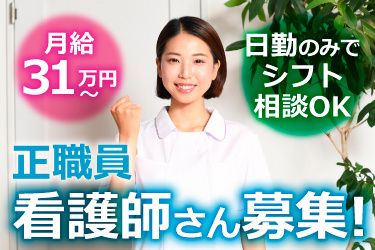 クリニック常勤の正・准看護師 鶴ヶ島市の地域密着型クリニック 夜勤なし、日勤のみ!月給31万円~