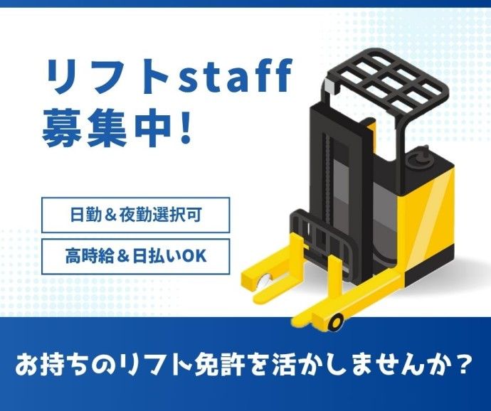 PR・職場情報 ■□■□■□■□■□■□■□■□ *オシゴトのおすすめポイント!* ■□■□■□■□■□■□■□■□ ▼日勤&夜勤あり!ライフスタイルに合わせて選べる! 曜日固定&週5日勤務で生活リズムも安定◎ ▼リフト免許を活かして高収入GET♪ 高時給1400〜1600円!さらに深夜帯は最大時給2000円! ▼年齢不問◎幅広い年代の方が活躍中! 免許をお持ちであれば年齢・性別問わず大歓迎! ■□■□■□■□■□■□■□■□ 「アスミル」で働く魅力をご紹介! ■□■□■□■□■□■□■□■□ ▼1.「未経験者大歓迎!チャレンジ精神旺盛なあなたを応援します!」 特別な資格や経験は一切不要です。 年齢や性別に関係なく、新しいことにチャレンジしたいという熱意を重視します! ▼2.「質の高いサービスを提供するための充実した研修制度」 クライアントに最高のサービスを提供できるよう、独自の研修制度をご用意しています。 未経験の方でも安心して業務に取り組めるよう、しっかりとサポートします。 ▼3.「急な出費にも対応!日払い制度で安心」 日払い制度があるので、急な出費があっても安心! お金の心配をすることなく、安心して仕事に集中できます。 共に未来を見据え、新しい一歩を踏み出しましょう。 あなたの成長をサポートし、輝ける明日を創造します。 ─────────────────────── 【応募後の流れ】 <1>WEBまたはお電話にてご応募 <2>電話面談1回/「06-7410-3620」よりお電話いたします。 <3>職場見学・採用 ※応募者が多数の場合、ご連絡が遅れることがあります。 ※面接日時を考慮いたしますので、お気軽にご相談ください。 ─────────────────────── ■株式会社アスミル(T) 派遣事業部:一般労働者派遣事業 派27-305329 求人ポイント シニア応援,昇給あり,交通費支給,即日勤務OK,急募,副業・WワークOK,主婦・主夫歓迎,長期,新卒,フリーター歓迎,バイク通勤OK,大量募集,学歴不問,車通勤OK,残業月20時間以内,平日のみOK,転勤なし,未経験者歓迎,経験者歓迎,有資格者歓迎,研修あり,社会保険完備,50代以上応募可,ブランクOK,残業月20時間以上,U・Iターン歓迎,家庭都合休OK,即日払いOK,40代以上応募可,第二新卒歓迎,週5からOK,固定時間制