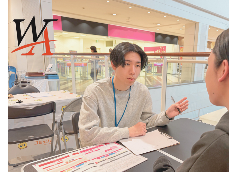 仕事内容: 【仕事内容】 01 催事・イベントでの集客営業 商業施設や展示会で通りかかったお客さまに声をかけ、ヒアリング→提案→クロージングまでその場で完結。1日の流れがわかりやすく、成果も数字で見えます。 02 法人・店舗への訪問営業 企業や店舗の担当者と直接向き合い、課題を聞いて、一緒に解決策を考えます。「売り込む」のではなく「聞いて、提案する」スタイルです。 03 提案書の作成・KPI管理 テンプレートは先輩と一緒に作ります。「作り方がわからない」ゼロから一人でやらせることはしません。慣れてきたら代理店営業(パートナー企業との関係構築)も担当できます。 ◆ 1日の流れ 09:30 / 現地集合・配置確認・挨拶 モール内の指定スペースに直行します。本社への立ち寄りは不要です。集合後、ディレクターと当日の目標件数・動き方を確認します。その後、担当店舗のスタッフと挨拶を行い、ブースの配置・導線・注意事項を確認してからスタートします。 10:00 / 開店・声かけスタート モールが開店すると同時に催事がスタートします。「今のスマホ、料金の見直しはされてますか?」「2分だけ今の契約、一緒に確認してみませんか?」という一言から会話を始めます。 通路を歩く人の中から、スマホを持っている方・立ち止まりそうな方に声をかけていきます。無視されることも多くあります。それは全員が通る道です。入社直後は先輩が隣に立ち、「どのタイミングで誰に声をかけるか」を隣で見せてくれます。「見て覚えろ」ではなく、声かけのたびに短く教えてもらえます。 11:00〜 / ヒアリング・料金比較・提案 ブースに来てくれたお客さまには、まず今の契約キャリア・プラン・月々の料金を聞きます。タブレットで現在の料金と乗り換え後の料金を並べて見せながら、「月々いくら変わるか」をその場で一緒に確認します。説明を暗記する必要はありません。画面を一緒に見ながら話す、という流れが基本です。 12:30 / 昼休憩(60分) 2名体制の日は交代で休憩をとります。1名の日は、モール側と調整した休憩時間に入ります。フードコートや近くのお店で食べることがほとんどです。 13:30〜18:45 声かけ・提案・申込対応を繰り返す 土日の午後はモールの人流が増える時間帯です。午前より声をかけやすくなります。申込が決まったお客さまには、その場でタブレットを使って手続きを進めます。1日を通じて、契約が1件も取れない日もあります。2〜3件取れる日もあります。平均的には1〜2件が目安ですが、曜日・天候・立地によって大きく変わります。 18:45 終礼・1日の振り返り 当日の件数・うまくいった声かけ・改善点をディレクターと共有します。「今日何が刺さったか」「明日どう動くか」を確認して終わります。個人を責める場ではありません。明日の行動を具体的に決める場です。終礼後はそのまま直帰です。 ◆ この仕事をやってみてわかること 1〜2名での現場は、自分で判断する場面が早く来ます。「誰に声をかけるか」「どう話を展開するか」を自分で考えながら動く時間が多いため、慣れてくると「自分なりのやり方」が見えてきます。 ◆ 正直に伝えておきたいこと * 立ち仕事が基本です。1日の大半は立ったまま過ごします。 * 声をかけても無視されること、素っ気なく断られることは日常的にあります。これはベテランでも変わりません。 * 1〜2名の現場では、うまくいかないときにすぐ相談できる人が隣にいないこともあります。その分、自分で考える力がつきます。 * 最初の1〜2週間は「自分には向いていないかも」と感じる人がほとんどです。多くの先輩が同じ時期を経験しています。