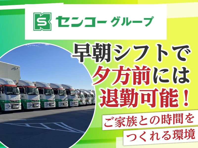 仕事内容 \免許・経験を活かして働ける/ ⭐特別休暇・手当など充実の福利厚生あり ⭐東証プライム市場上場センコーグループで安定勤務 ⭐早朝勤務で渋滞ストレスはナシ! 【仕事内容】 関東圏内の大手量販店へ 食品や生活雑貨などを 7t・13tトラックにて配送して頂きます。 <配送エリア>関東圏内 <配送件数> 1日3~4件(1~2往復程度) <積み下ろし>パレットに積みつけられた 商品をハンドリフトを使用して積込み =============== ✅あなたの経験、活かしませんか? =============== 免許や経験を活かして即戦力として 働ける環境が整っております! 即戦力として、安定と成長を両立できる ステージをお探しの方へ。 あなたの運転にかける情熱を 当社で活かして働きませんか。 ============ ✅安定して働けます! ============ 東証プライム市場上場の大手物流企業である センコー株式会社のグループ会社で、 強固な基盤の元に事業を展開しています。 ・景気に左右されにくい安定経営 ・充実の福利厚生と制度 ・キャリアパスも豊富 安定性のある会社で腰を据えて働けます。 ============= ✅スタッフインタビュー ============= Q.転職の決め手と、当社の安定性について A.前職の給与と経営状況に不安を感じ 「家族のために安定」を最優先に転職を 決意しました。 東証プライム市場上場の大手物流企業で 基盤があり福利厚生や賞与がしっかり 保証されているのが最大の魅力でした。 将来の不安なく腰を据えて働ける安定感が 決め手です。 Q.早朝(夜勤)シフトのメリットは? A.早朝スタートは配送が圧倒的にスムーズに なるのが大きなメリットです。 道路が空いている時間帯なので、 渋滞のストレスがなく決まった スケジュール通りに快適に運転できます。 さらに業務が午前中には完了するため、 午後の時間を丸々プライベートに 充てられるようになりました。 役所での手続きや家族との夕食など、 生活を充実させる為の「ゆとり」が 手に入ったと感じています。 Q.求職者の方にメッセージをお願いします。 A,最新のトラック設備や無理のない 運行管理など、プロとして気持ちよく 働ける環境が整っています。 不安定な環境で不安を抱えている方は ぜひ当社の安定したステージで経験を 活かしてください。