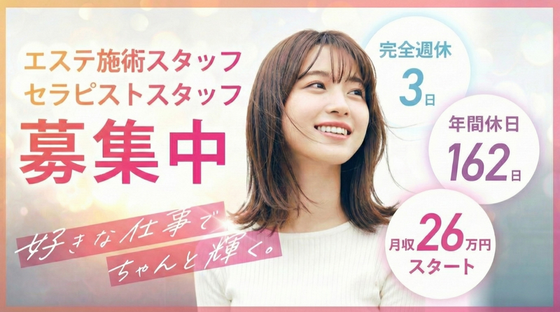 仕事内容 ✼┈┈┈┈┈┈┈ここがPoint┈┈┈┈┈┈┈✼ ✅ 完全週休3日&年休162日/年末年始5連休 ✅ インセンティブあり ✅ 美容師免許を活かしたセカンドキャリア ✅ 話題沸騰「令和の虎」で完全オール達成 ✅ 脱毛・ホワイトニング無料、店販化粧品社割(半額) ⏩美容業界でも随一の好条件! ⏩ 未経験・ブランクOK! ✼┈┈┈┈┈┈┈┈┈┈┈┈┈┈┈┈┈┈┈✼ 「月1回・1時間・1万円で、身だしなみを完璧に!」 ミダシーは、男性専用のワンストップ美容サロンです。 ホワイトニング、眉毛スタイリング、鼻毛ワックス、手の指・甲の脱毛、ひげ脱毛または光フェイシャル、フェイスパック、リップパック、ネイルケア、8つの身だしなみケアを1時間で完了。 令和の虎で完全オールを勝ち取り、注目の新サービスとして話題になっています。 【✨具体的な仕事内容】 *受付・接客・カウンセリング *施術業務 *店内清掃・その他サロン業務 【✨施術内容】 ホワイトニング、眉毛スタイリング、鼻毛ワックス、手の指・甲の脱毛、ひげ脱毛または光フェイシャル、フェイスパック、リップパック、ネイルケア施術、全身脱毛 【✨1日の流れ】 11:45|出社&朝礼 本日の予約状況確認、施術ブースやアイテムのセッティング ↓ 12:00|午前の施術 お客様ご案内、施術、カウンセリング、カルテ入力 ↓ 15:00|休憩(1h) ランチ休憩 ↓ 16:00|午後の施術 お客様ご案内、施術、カウンセリング、カルテ入力 ↓ 18:00|空いている時間でカウンセリング練習、店内清掃 ↓ 20:00|施術、明日の準備、片付け ↓ 21:00|退社 1日の充実感とともに帰宅 【✨20代女性_社員インタビュー】 ──この仕事を続けている理由は? 以前は美容室でアシスタントをしていましたが、拘束時間が長く、なかなか収入も安定せず、将来に不安を感じていました。 「せっかく取った美容師免許をもっと活かしたい」と思っていた時に出会ったのが、ミダシーでした。 完全週休3日制・年間休日162日という働きやすさと、月給+インセンティブでしっかり稼げる環境に惹かれて転職を決意。 今は、自分の時間を大切にしながら、美容の仕事を楽しめる毎日を送っています。 ──仕事の魅力は? ヒゲ脱毛・フェイシャル・眉スタイリング・ホワイトニングなど、幅広い美容スキルを身につけられるのが魅力です。 施術はしっかりとしたマニュアルと研修があるので、未経験でも安心。さらに、スタッフ自身も施術を体験できる機会があるので、働きながら自分自身もどんどん綺麗になれるのが嬉しいポイントです。 お客様に「また来たい」と言っていただけたときは、本当にこの仕事をやっていてよかったと思えます。 ──入社を考えている方へメッセージ ミダシーはメンズ専用の美容サロンですが、スタッフの多くは女性で、女性ならではの目線や接客が高く評価されています。 「週に4日だけ働きたい」「プライベートも充実させながらキャリアアップしたい」そんな希望も叶えられる職場です。 頑張りはしっかり評価され、成果次第では早期の店長・マネージャー昇格も可能です。 「美容師免許を眠らせているけど、また美容の仕事がしたい」「自分を大切にしながら、美容の仕事で成長したい」そんな方に、ぜひチャレンジしていただきたいです。 【✨キャリアパス】 ◎一般スタッフ →リーダー(マネジメント) →店長/エリアマネージャー/本部運営 新規出店を控えており、スピード感のある昇進も可能です!