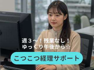 仕事内容 \週3日〜!ゆっくり午後〜OK✨/ 医療関連会社で ⭐コツコツ経理サポート⭐ 電話対応ナシ! -☆・。-☆・。-☆・。-☆・。-☆・。-☆・。-☆・。 ✅未経験OK!勉強中の方も歓迎! ✅働きやすい環境◎ ✅丁寧なサポートで安心! ⏩お仕事内容 ・会計データ入力 ・仕訳、資料作成 ・その他 コツコツルーティーンは中心です。 同じ業務の方がいるので安心です! 電話対応はありません! ╲⭐万全のサポート体制⭐╱  ̄ ̄ ̄ ̄ ̄ ̄ ̄ ̄ ̄ ̄ ̄ ̄ ̄ ̄ ̄ ̄ 困ったことや、わからないことは スグに相談できる環境です! 同じ業務のスタッフがいるので安心です!