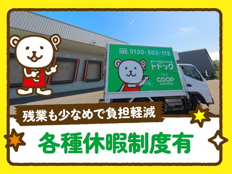 仕事内容 仕事内容について CMでおなじみ「宅配トドック」のサービス員です。食料品や日用品をお届けし、注文用紙の回収や季節商品のご案内もお願いします。 ~具体的には~ ●組合員様宅への商品(食料品・日用品)のお届け ●注文用紙の回収 ●季節・キャンペーン商品のご紹介 ●1日70件前後の固定ルート配送 ~入社後のフォロー体制~ まずは座学研修からスタート。その後、7週間の同乗研修で先輩がイチから丁寧に教えます 。最終テストに合格するまでしっかりサポートするので、未経験でも安心してくださいね !「本当に私にできるかな…」そんな不安がある方は、同乗体験も可能です!実際の仕事を見て、不安を解消してから応募を決められます 。荷物の積込み見学もOKです! 安心・安定の理由は「休日」と「収入」 月給22万円 に加え、残業代は全額支給!お休みは土日固定+平日1日の完全週休3日制!試用期間3ヶ月も給与・待遇は同じです♪ 「私にもできるかな…」その不安、解消します! 普通免許(AT限定)があればOK!運転するのはバックモニター搭載の小型AT車です。元コンビニ勤務や福祉業界など、未経験スタートの先輩が多数在籍しています! 負担が少ないから、長く続けられる! 配送ルートは決まった「固定ルート」!食料品や日用品なので景気に左右されにくく、業務量も安定しています。平均残業も月15h程度と少なめですよ♪ 契約社員でも、将来の安心を。 頑張り次第で正職員を目指せる「正職員登用制度」があります。社会保険完備はもちろん、報奨金制度や共済制度、育児・介護休暇など福利厚生も充実です!
