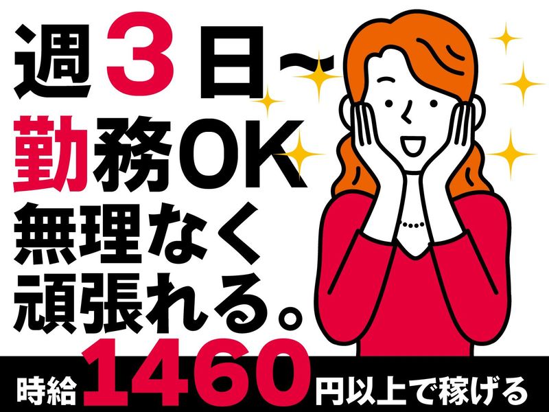 仕事内容 ______________ ⭐オープニング第二弾募集⭐  ̄ ̄ ̄ ̄ ̄ ̄ ̄ ̄ ̄ ̄ ̄ ̄ ̄ ̄ \\4月末まで入社の方限定!// _人人人人人人人人人人人人人人_ >★時給1760円の高時給★!<  ̄Y^Y^ Y^Y^Y^Y^Y^Y^Y^Y ̄ 【高時給】×【単純作業】 *倉庫での軽作業スタッフ大募集!* ▼ ▼ ▼ ▼ ▼ ▼ 【-仕事内容-】 ■空オリコンの清掃、整理など ”超”単純作業だから 未経験からでも活躍出来るお仕事! ▼ ▼ ▼ ▼ ▼ ▼ 【効率的に稼ぐ◎】 時給1760円×8時間×週5日 =月収28万1600円 Wワークで他との掛け持ちOK! 効率用稼げるのがこのお仕事の魅力! ・・・・・・・・・・・・・・・・ ____________ ⭐選べる時間帯⭐  ̄ ̄ ̄ ̄ ̄ ̄ ̄ ̄ ̄ ̄ ̄ ̄ 【A】6:30~15:15 【B】16:15~1:00 ※基本、月~金のお仕事です。 ※上記の内、勤務時間は専属となります。 ✅週2・3日又は週5日勤務 ✅時給1760円の好待遇案件◎ ✅20~50代の男女スタッフ活躍中! ✅主婦の方も多数在籍しています◎ ✅40名の大募集で同期も多数!! _______________ ⏩point 1│安心スタートを約束  ̄ ̄ ̄ ̄ ̄ ̄ ̄ ̄ ̄ ̄ ̄ ̄ ̄ ̄ ̄ 研修制度があり、安心して働けます。 先輩スタッフがサポートしますので 初めての方でも安心です。 _______________ ⏩point 2│自由な勤務スタイル  ̄ ̄ ̄ ̄ ̄ ̄ ̄ ̄ ̄ ̄ ̄ ̄ ̄ ̄ ̄ 髪型・髪色・ヒゲ自由(規定) 車・バイク 自転車通勤も可能です。 _______________ ⏩point 3│快適な職場環境  ̄ ̄ ̄ ̄ ̄ ̄ ̄ ̄ ̄ ̄ ̄ ̄ ̄ ̄ ̄ 休憩室・自動販売機・喫煙スペースも あり、リラックスして過ごせます。 新しいセンターですので、 働きやすさ抜群の職場です◎