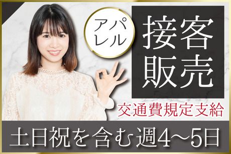 仕事内容 ■エレガンスな女性らしいシルエットのアパレル製品を取扱っております 女性に人気のアパレル専門店で 接客・販売のお仕事です。 ・洋服や雑貨の提案 ・コーディネート ・レジ業務 ・商品管理(品出し) ・検品、棚卸 ・店内ディスプレイ ・その他付随する業務 ■ファッションが好きな方にピッタリ♪落ち着いた接客ができるお店 特別な資格や経験は不要! はじめは笑顔で丁寧な挨拶ができればOKです! 好きなものに囲まれて仕事をしながら 流行りのアイテムやブランドの知識が身につきます♪ ネイル・ピアスなどのオシャレも自由◎ ヒールの高さに決まりがないため、 負担の少ない靴で働くことができますよ。 ■週4日~無理なく働ける◎20代~30代が活躍中! 家庭やプライベートとの両立OK! 女性スタッフが多数在籍しております。 百貨店でのお仕事なので、 ワンランク上のマナーや接客技術が学べるのもPOINT◎ 接客スキルを磨きたい方にもピッタリの環境です♪ ■来社&履歴書不要!電話でお仕事のご紹介が可能です。 今回募集しているお仕事に関して もっと詳しく説明してほしいと思われた方には、お電話でしっかり説明します。 来社&履歴書不要でお仕事のご案内が可能なので 仕事が休みの日や仕事終わりなど、 あなたの都合のよいタイミングで連絡いただければ希望のお仕事を案内しますので まずはご応募ください。