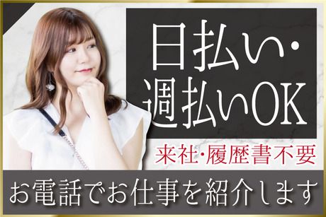 選考プロセス 平日10~19時の間のWEB応募には 応募確認後スグに入力頂いた電話番号に06-6225-8324から連絡します。 その際にシフトや開始日等の希望をうかがい、お仕事を紹介します。 ※連絡時にご不在の場合は携帯番号を入力頂いている場合はショートメッセージをお送りします ※土日祝や10~19時外の応募は翌営業日に連絡します 【問合せ先について】 問合せ先:06-6225-8324 ☆不明な点やもう少し詳しくお仕事の確認をされたい場合などは お気軽にお問い合わせください。 ●弊社営業時間:平日10~19時 ※営業時間外でも対応可能な場合もあります。 応募方法 来社&履歴書不要! 必要事項を入力の上、【応募する】ボタンよりご応募下さい。 電話での応募も受付中! お急ぎの方は下記番号よりお電話をお待ちしております。