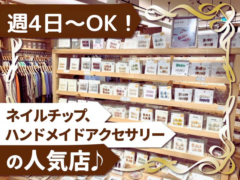 求めている人材 ―――――――――――――――――― ・。*接客・販売未経験の方大歓迎*。・ ―――――――――――――――――― 「おしゃれが好き」 「雑貨が好き」 「飾りつけをするのが好き」 という方ならどなたでも大歓迎です◎ #20代~30代活躍中 #未経験OK #ブランク歓迎 #学生歓迎 #主婦(夫)歓迎 #フリーター歓迎 \\ *こんな方も歓迎します!* // ★レギュラー勤務で 安定収入をGETしたい! ★雑貨店・雑貨販売スタッフや アパレル販売スタッフは初めて だけど、カフェスタッフ等での 接客業経験を活かしたい! ★学生時代にオープニングスタッフ としてアパレル販売員を経験。 子育てが落ち着いたので、 久しぶりにアパレル業界で働きたい! ★将来的に正社員を目指したい! ★バイヤーにチャレンジしたい!