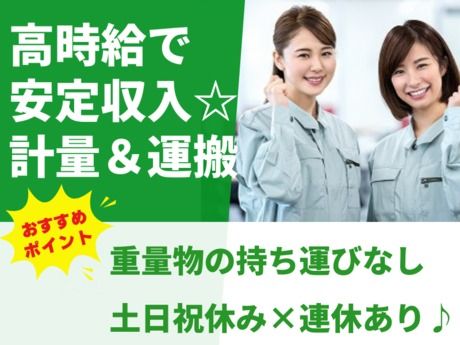 時給1300円★原材料の運搬や計量作業♪軽作業で未経験歓迎!正社員登用制度や大型連休も充実!