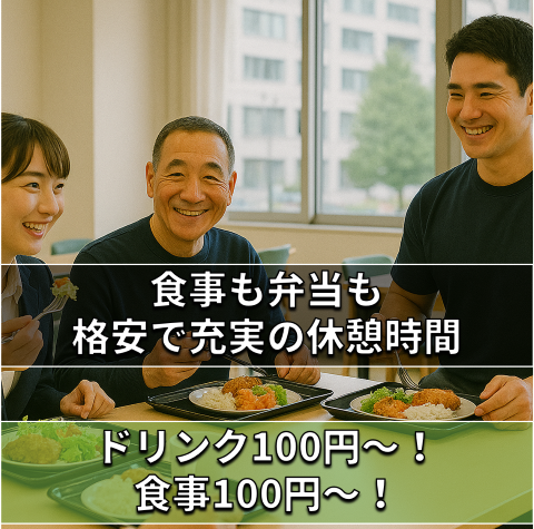 【保険制度】 雇用保険、労災保険、健康保険、厚生年金 待遇 福利厚生も充実!安心して長く働けます 社内販売あり ・飲み物 100円・食事 100円!お財布に優しい価格で毎日安心 各種制度 ・社会保険完備(健康・厚生年金・雇用・労災) ・有給休暇制度(法定通り) ・正社員登用制度あり 待遇 ・昇給あり(年1回/業績・評価による) ・賞与あり(正社員登用後/年2回) ・交通費支給(会社規定あり) 働きやすさ ・車・バイク通勤OK(駐車場完備) ・制服貸与 ・研修制度あり(未経験から丁寧に指導)