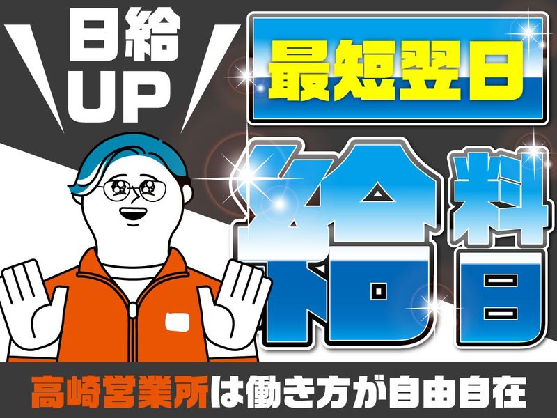 仕事内容 >> 日給増額で安定収入! << 夜勤なら月収28万円以上も可能! ガッツリ稼ぎたい方にぴったりのお仕事です✧ ―――――――――――――――― ▼この仕事のポイント♪ ✅日払い・週払いOK ✅週1日~/短期OK ✅日勤・夜勤が選べる ✅夜勤なら月収28万円以上も可能 ✅未経験歓迎 ✅即日勤務OK ✅全額日給保証 ✅直行直帰OK ✅チーム作業で安心 ―――――――――――――――― <仕事内容> ・店舗什器(棚・カウンター・レジ台など)の搬入・搬出・設置 ・オフィス家具の搬入・搬出・設置 ・備品などの搬入・搬出・設置 ◆1現場3~5名のチーム制 ◆重いものは協力して運びます ◆難しい作業はありません <勤務地多数!> 群馬県内~埼玉北エリア、 都内まで多数ご用意しています! 高崎・前橋・新前橋・ 伊勢崎・太田・館林・熊谷・ 行田・桶川・鴻巣…など ◎駅チカ案件多数 ◎希望エリア考慮します 「今すぐお金が必要」 「スキマ時間で働きたい」 「ガッツリ稼ぎたい」 「体を動かす仕事が好き」 志望動機は何でもOK! 学⽣〜20代・30代・40代の男性活躍中です♪ スタッフの声✨ ━━v━━━━ ■20代男性・フリーター 「日払いだからすぐ収入になるのが助かります!スマホで登録もできて、すぐに働けるのが便利です!」 ■30代男性・フリーター 「体を動かす仕事が気分転換にもなるし、仲間と協力して達成感も味わえるのが楽しい!」 ━━【 働き方は自由♪ 】━━ 「週1だけ」 「副業として」 「週5でガッツリ」 などライフスタイルに合わせてシフト相談OK! 働き方はご相談くださいね◎ Wワーク・フリーター・学生も大歓迎!!