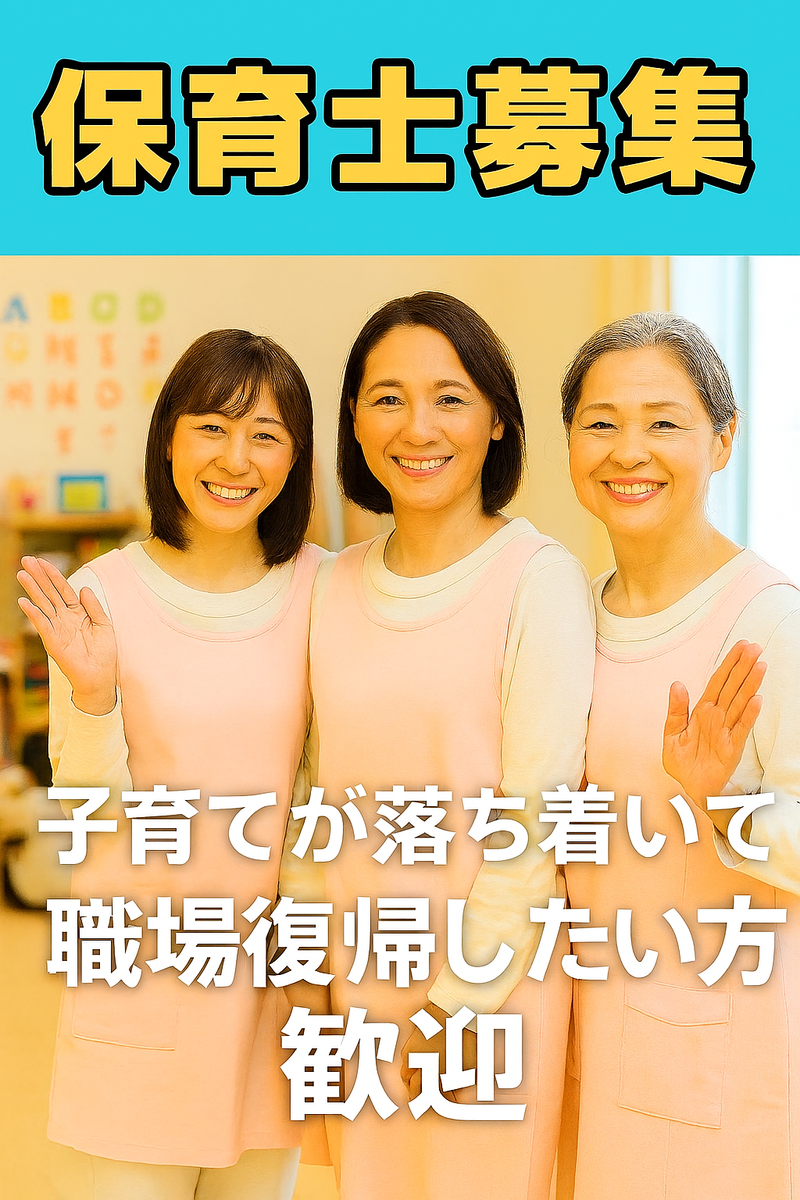 仕事内容 ⭐ブランクOK!あなたの経験が活きる【小規模託児所】保育士募集 ⭐ 「もう一度、子どもたちと向き合いたい」 その気持ちを、ここで叶えませんか? 長年の人生経験と保育士資格をお持ちのあなたへ。 小規模でアットホームな託児所だからこそ、 一人ひとりの子どもにじっくりと寄り添える、 理想的な保育環境をご用意しています。 *・。*・。*・。*・。*・。*・。*・。 【仕事内容】 タクシー会社に併設された定員19名の小規模託児所です。 ブランクがあっても大丈夫。預かるお子さんの人数が少ないため、 無理なくスムーズにお仕事に慣れていただけます。 具体的には ・子どもたちの身の回りのお世話 (食事、おやつ、着替えの補助など) ・遊びのサポートと見守り (集団遊びや個別遊び) ・環境整備 (保育室・おもちゃの清掃・点検) ・保育記録の作成 (シンプルなシステムを使用。操作もすぐに慣れます) など 分からないことなどは先輩たちが しっかりとサポートしますのでご安心ください! ✨あなたの負担を減らすサポート体制 栄養士さん が常駐しているため、調理業務はありません。 保育事務さん がいるため、煩雑な事務作業や 頻繁な保護者対応はほとんど発生しません。 ✨求人のポイント ◆【平日のみ】&【日勤のみ】 家庭との両立も安心です。 ◆基本土日休み(カレンダー通り) プライベートの予定も立てやすい! ◆残業は月平均10時間程度で少なめ。持ち帰り仕事は一切ありません! ◆車・バイク通勤OK (駐車場完備) ◆空調・モニター完備の清潔で安全面に配慮された職場です。 ◆近くにコンビニがあり、休憩中も快適にお過ごしいただけます。 ------------------- お電話での応募も大歓迎! 【TEL 046-236-0706】 TEL受付/9時~17時 ※WEB面接も可能です。 -------------------
