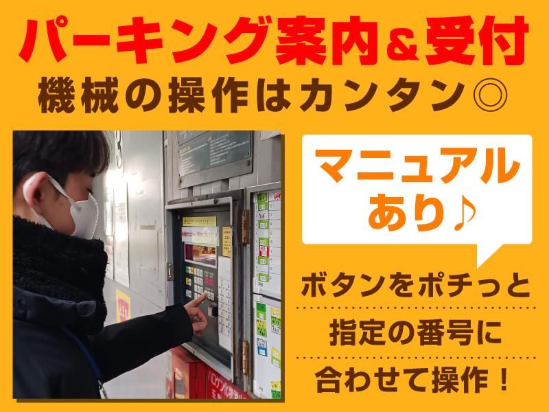 仕事内容 ◆◇◆━━━━━━━━━━━━━━━━━ NEWスタッフ大募集します! 屋内パーキングで落ち着いて働こう♪ ━━━━━━━━━━━━━━━━━◆◇◆ \ 学生さん・フリーターさん大歓迎! / \ 50代・60代の再スタートも応援! / 「接客は好きだけど体力仕事はちょっと…」 「無理のないペースで働きたい」 そんな方にピッタリのお仕事です。 ここは、屋内型の立体駐車場。 お客様の車の出入りを見守りながら、 機械操作やご案内を行うシンプルワーク! 天候に左右されず、快適な環境で働けます。 ──────────────── お仕事内容 ──────────────── ◎駐車場の利用客のご案内 ◎車両の入出庫時の誘導・対応 ◎駐車券の読み取りや機械操作 ◎車の呼び出し対応 など 運転業務は一切ナシ! 機械操作はボタンを押すだけなので、 未経験でもすぐに覚えられます♪ 最初は先輩スタッフが横につき、 丁寧に教えてくれるので安心です。 ──────────────── 働きやすさのポイント ──────────────── ◆週5日×フルタイムでしっかり稼ぐ └平日のみOK ◆体への負担が少ない 座り仕事が多いため、 体力に自信がなくても続けやすい! ──────────────── 活躍中のスタッフたち ──────────────── ◆大学生スタッフ 講義のない日に働いてます! 屋内勤務だから天気を気にせず通えるのが◎ 長く続けられそうです。 ◆フリータースタッフ かけもちですがシフト融通が きくのでとても助かってます。 1人時間も多く自分のペースに 働る環境も気に入ってますね。 ◆50代スタッフ アーリーリタイアしましたが、 体に負担が少なく無理がないですね。 皆さん穏やかで居心地もいいです◎