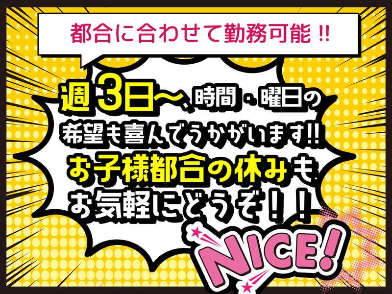 週3日~OK♪午前の短時間◎お子様の急な発熱等のお休みもOK