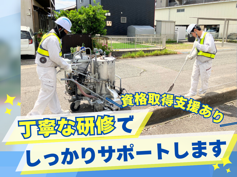 仕事内容 今日の仕事が 明日の誰かの笑顔を守ってる。 ✅無借金経営の安定企業! ✅不況に左右されない官公庁の仕事 ✅転勤ナシ!各種資格取得でスキルアップ! ✅<働き方改革推進中>年間休日120日!! ✅<待遇充実>賞与年3回!! ✅当社の育休取得率は性別を問わず100%! =-=-=-=-=-=-=-=-=-=-=-=-= お電話でのお問い合わせも大歓迎! TEL:052-841-9250 採用担当/天野まで 受付/8:30~17:30 =-=-=-=-=-=-=-=-=-=-=-=-= ―――――――――――――――――― 【 仕事内容 】 ―――――――――――――――――― 交通事故を防止する、道路ラインや横断歩道、 カラー塗装などを施工する仕事です。 様々な種類のラインや文字、記号、カラー塗装など、 技術と経験が必要な奥深い仕事ですが、 未経験でも国家資格を取得して 堅実なキャリアを築けます! 主な取引先が官公庁なので、 仕事量も業績も安定◎ 社会の安全や豊かな暮らしを守ることへの 誇りとやりがいを感じられる仕事です。 ⏩現場は愛知県のみで遠方の出張ナシ! ⏩常に必要とされる仕事です。 スキルを身につければ 「なくてはならない貴重な人材」として 長く安定して働けます! ―――――――――――――――――― 【 入社後について 】 ―――――――――――――――――― 入社後は先輩の補助から始め、 約1年後には施工機を使ってラインを 引けることを目指していきます。 その他様々な建設関係の資格についても 業務時間中に講習に参加したり、 会社費用で資格取得をすることができます! レベルの高い技術者育成のため 1人1人のキャリアアップを 会社が全力で支えています。 ⏩資格取得応援!講習参加費用や 受験費用は会社が負担! 国家資格である 「路面標示施工技能士」を取得可能◎ ―――――――――――――――――― 【 一日の流れ 】 ―――――――――――――――――― 事務所に集合し 準備をして現場へ移動 (現場により集合時間は異なります) ※現場は愛知県内 8:30…現場作業開始 16:30…現場作業終了! →帰社後、片付け、退社 ⭐道路工事なので ダラダラと残業をすることはありません! 「残業が減った」 「家族と過ごす時間が増えた」 という社員もいますよ。 ―――――――――――――――――― 【 当社について 】 ―――――――――――――――――― 「社員には安心して生活してほしい」 そんな社長の想いのもと 現場仕事は工事量によって 給与が大きく変動する会社も少なくない中 当社では月給制&手当は一定額保証。 年間を通して安定した給与を得られ 忙しい時期は手当もしっかり +年3回の賞与(通常賞与と決算賞与)と 待遇も充実★ 働きやすい環境を作るために約5年前まで 105日だった休日を120日に増やすなど、 働き方や制度を常にアップデート! 現在は年に3回1週間程度の長期休暇が あるので、プライベートを充実できます◎ 無理なく家族との時間を取りたい方にも ピッタリです。 ―――――――――――――――――― 【 当社の雰囲気 】 ―――――――――――――――――― 私たちの仕事は形になって 街に残っていきます。 以前施工した現場を通ると 嬉しくなりますし、 「この道路は…」って 家族に自慢してる社員もいますよ。 地域の平和で安全安心な暮らしを 守っていると思うと 大きなやりがいを感じられて 日々頑張る活力になっています。 その日の予定によって、 1班もしくは2班で動きます。 様々な工事がありますが、 イチから丁寧に教えますので、 未経験の方も安心して キャリアをスタートできます ―――――――――――――――――― 【 HPにてブログや実績を紹介 】 ―――――――――――――――――― http://www.eco-maeyama.com/ 交通安全施設のほか ベンチ・遊具等の公園景観施設、 橋梁メンテナンス事業も展開。 ミャンマーで交通安全工事も行うなど 常に新しい挑戦も。 また地域貢献活動として、 カーブミラーの清掃ボランティアを 35年続けています。 長年の功績を評価いただき、 名古屋市長より「道路愛護功績者」 として表彰いただきました。 ╭━━━━━━━━━━━╮ インスタもやってます! ╰━v━━━━━━━━━╯ ▶働く社員や職場環境など 詳しく知りたい方は、 インスタもご覧ください! ID:@maeyama_saiyo