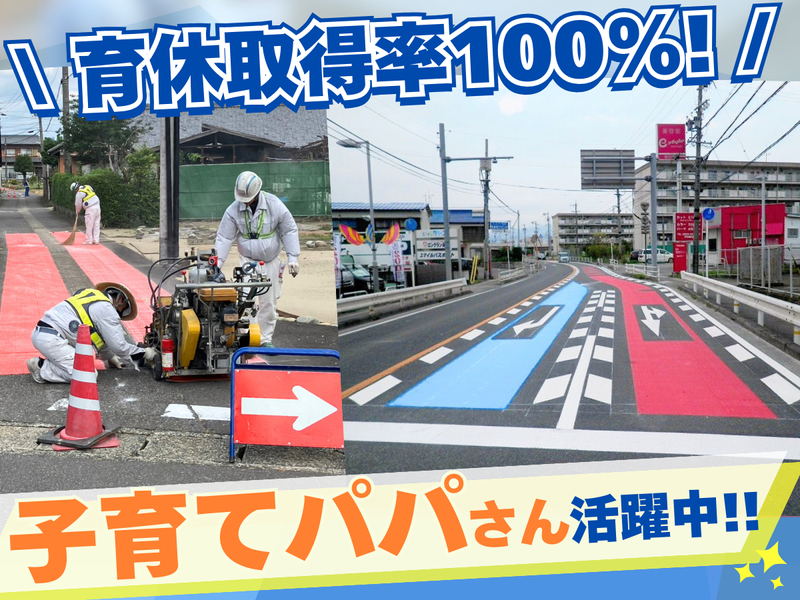 仕事内容 『 国家資格取得 』を目指せる。 未経験から” 一生モノ ”の手に職を。 :::::::::::::::::::::::::::::::::::::::::::::: ■ 長く安心して働ける理由  ̄ ̄ ̄ ̄ ̄ ̄ ̄ ̄ ̄ ̄ ̄ ̄ ̄ ̄ \無借金経営の安定企業です!/ ✨不況に左右されない官公庁の仕事がメイン ✨転勤なし!地元で腰を据えて働けます! ✨社員の声をカタチに!働き方改革推進中! \プライベートを大切にできる待遇!/ ✨年間休日120日!長期連休は最大9連休! ✨当社の育休取得率は性別を問わず100%! ✨賞与年3回!頑張りをしっかりと還元◎ \各種資格取得でスキルアップ!/ ✨講習参加費用や受験費用は会社が負担! ✨「路面標示施工技能士」を取得可能 ……………………………………………… お電話でのお問い合わせも大歓迎! TEL:052-841-9250 受付:8:30~17:30(採用担当/天野まで) ……………………………………………… :::::::::::::::::::::::::::::::::::::::::::::: ―――――――――――――――――― ■ 仕事内容 ―――――――――――――――――― 交通事故を防止する道路ラインや横断歩道、 カラー塗装などの施工業務をお願いします。 *作業予定に応じて1班または2班で動きます さまざまな種類のラインや文字、記号、 カラー塗装などを対応するため、 技術と経験が必要となる奥深い仕事ですが、 国家資格という「確実なスキル」が 身につくため堅実にキャリアを築けます! ⏩現場は愛知県のみで遠方の出張ナシ✨ \ 交通事故を未然に防ぐ / 社会の安全や豊かな暮らしを守ることへの 誇りとやりがいを感じられる仕事です。 \ 誰かに自慢できる仕事 / 子どもに「自分が引いたラインなんだ」と 休日のお出かけの時に自慢してしまった(笑) なんてうれしそうに語るスタッフもいます。 <一日の流れ>………………………………… 事務所に集合し準備をして現場へ移動 (現場により集合時間は異なります) ※現場は愛知県内 8:30…現場作業開始 16:30…現場作業終了! →帰社後、片付け、退社 ✅ダラダラと残業をすることはありません! 「残業が減った」「家族との時間が増えた」 という社員からの嬉しい声もあります。 …………………………………………………… ―――――――――――――――――― ■ 入社後について ―――――――――――――――――― 入社後は先輩の補助から始め、 約1年後には施工機を使ってラインを 引けることを目指していきます。 その他様々な建設関係の資格についても 業務時間中に講習に参加したり、 会社費用で資格取得をすることができます! レベルの高い技術者育成のため 1人1人のキャリアアップを 会社が全力で支えています。 ―――――――――――――――――― ■ 当社について ―――――――――――――――――― 現場仕事は工事量によって 給与が大きく変動する会社も少なくない中 「社員には安心して生活してほしい」 そんな社長の想いのもと 当社では月給制&手当は『 一定額保証 』。 忙しい時期は手当もしっかりと支給、 年3回の賞与(通常賞与と決算賞与)など 安心して働ける待遇が充実しています★ 働きやすい環境を作るために約5年前まで 105日だった休日を120日に増やすなど、 働き方や制度を常にアップデート! 現在は年に3回1週間程度の長期休暇が あるので、プライベートを充実できます◎ 無理なく家族との時間を取りたい方にも ピッタリの職場環境です。 ……▼ HPにてブログや実績を紹介 ▼…… http://www.eco-maeyama.com/ 交通安全施設のほか ベンチ・遊具等の公園景観施設、 橋梁メンテナンス事業も展開。 ミャンマーで交通安全工事も行うなど 常に新しい挑戦も。 また地域貢献活動として、 カーブミラーの清掃ボランティアを 35年続けています。 長年の功績を評価いただき、 名古屋市長より「道路愛護功績者」 として表彰いただきました。 ╭━━━━━━━━━━━╮ インスタもやってます! ╰━v━━━━━━━━━╯ ▶働く社員や職場環境など 詳しく知りたい方は、 インスタもご覧ください! ID:@maeyama_saiyo
