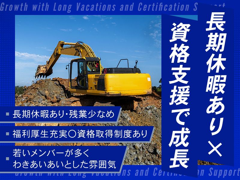 仕事内容 ////////////// 未経験者も経験者も大歓迎! 「重機オペレーター」 募集 ////////////// <求人のPOINT> ✅公共事業が9割以上! →工期にゆとりがあり、安定性抜群。 ✅残業少なめ&長期休暇もあり! ✅直行直帰OKで通勤ストレスナシ! ✅お子様の行事や家庭の急用時もお休み取得可能! ✅福利厚生充実〇資格取得制度あり <主な業務内容> ・区画整理工事に伴う用排水路の 掘削および埋戻し作業 ・クレーン仕様バックホーを使用した吊荷作業 ・道路・河川工事等での法面仕上げ ・不整地運搬車の運転 ・除雪作業 ※下記の作業もできる方だとさらに大歓迎 ・ダンプの運転 ・下回り作業 <スタッフについて> 20代4名、30代3名、60代1名が在籍。 建設業界経験者が多数活躍中! 未経験者の雇用実績もあり。 若いメンバーが多く、わきあいあいとした 雰囲気で、ストレス少なめの職場です♪