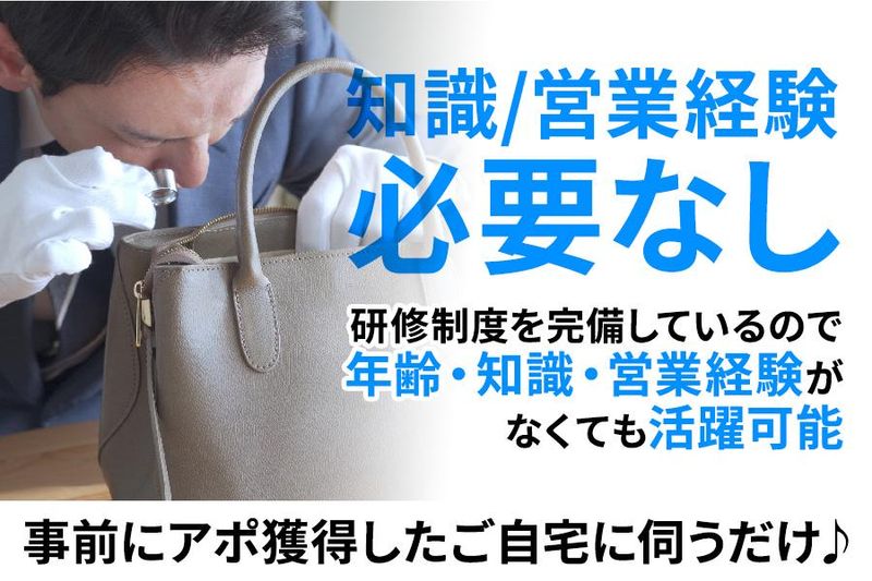 仕事内容 / 新規オープニング募集!✨ 新コールセンター開設に伴い 買取スタッフをオープニング募集! \ オフィスに縛られず、 全国各地を巡りながら 裁量権を持って高収入を目指せる、 反響型の出張買取のスタッフの募集! テレアポや飛び込みは一切なく、 アポイントはすべて 自社コールセンターが取得済みの 『反響型営業』になります◎ 営業未経験の方でも、 安心してスタートできる環境が整っています! 《仕事内容》 *自社コールセンターが取得した 訪問予定(アポ先)の確認 *ご予約のある一般ご家庭へ訪問(全国各地) *家電・骨董品・ジュエリー・貴金属などの査定 *買取のご提案・お取引対応 訪問件数は1日あたり6~10件程度。 事前にお約束のある お客様宅への訪問のみなので、 無理な営業は一切ありません。 査定金額は品目ごとに一定の基準があり、 専門知識がなくても対応可能です◎ 「他にも不要なものはございますか?」 とお声がけし、なければ 「ありがとうございました!」で完了。 見積だけのお客様も多く、 無理な買取や強引な提案は一切行いません。 \\✨このお仕事の魅力✨// ✅完全反響型で営業に集中できる  ̄ ̄ ̄ ̄ ̄ ̄ ̄ ̄ ̄ ̄ ̄ ̄ ̄ ̄ ̄ ̄ アポイントはすべて取得済み! 飛び込みやテレアポがないため、 効率良く成果を出せます。 お客様との信頼関係づくりに 専念できる環境です。 ✅全国を回る自由な働き方  ̄ ̄ ̄ ̄ ̄ ̄ ̄ ̄ ̄ ̄ ̄ ̄ ̄ 「今週は仙台、来週は福岡」など 毎週違う土地へ、 出張中でも時間の使い方は自由で 観光や早上がりもOKです! ✅自由な働き方  ̄ ̄ ̄ ̄ ̄ ̄ ̄ ̄ お仕事は直行直帰OK! 出張中の時間の使い方も自由で早上がりもOK♪ オフィスに縛られない働き方が叶います。 ✅将来につながる営業スキルが身につく  ̄ ̄ ̄ ̄ ̄ ̄ ̄ ̄ ̄ ̄ ̄ ̄ ̄ ̄ ̄ ̄ ̄ ̄ ̄ ヒアリング力・提案力・交渉力など、 他業種でも通用する 「売れる営業の考え方」を習得可能。 将来、異業種営業や 独立・経営者を目指す方にも最適です。