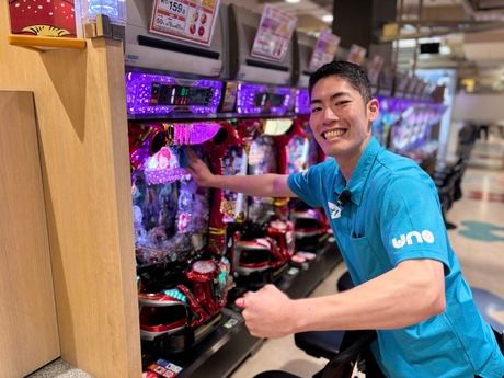 職場環境 【従業員構成】 ☆実際に働いてる方にインタビュー☆ ●Aさん(フリーター/20代/女性) 元々パチンコ店で働いており、 引越しのタイミングで このお店の求人に応募しました! 通勤も隣駅なので、とても近いですし 朝から長く働けるのがこの店舗だけでした。 今では本八幡UNOの自他ともに認める 「アイドル」的な存在になっています(笑) ●Kさん(20代/男性) パチンコ・スロットを普段から打つので、 好きな趣味を活かせる場所で働きたいと思い、 応募しました! 新台の時にはワクワクしながら働けますし、 お客様も詳しい人がたくさんいるので、 会話が盛り上がります! 駅チカで通いやすいところが 一番良いところかもしれません(笑) 【職場の雰囲気】 にぎやかな職場 協調性がある 立ち仕事 アットホーム お客様との対話は多い 初心者活躍中 力仕事が少ない 自分の都合に合わせやすい 知識、経験不要
