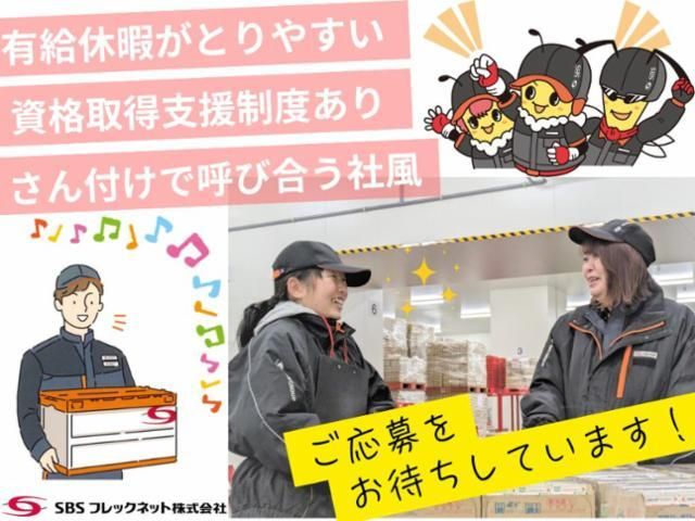 仕事情報 ● 仕事内容 フォークリフトでの大型トラックへの積み込み、乳製品などの仕分け・検品・庫内清掃などもしていただきます。カウンターを使用して、原料入庫~格納作業、原料殻の廃棄搬出作業もお願いします。入社後は扱う商品を覚えてもらいながら、簡単な作業から少しずつ始めていただけます。 防寒着貸与!給与前払OK! 冷蔵庫での作業です。夏は涼しく冬は外気より温かい衛生的で快適な職場環境です。防寒着を貸与いたしますのでご安心ください。また、給与の前払いもOKです。スマホで簡単!支給日前に給与を受け取れます!振込手数料は全額会社負担で、上長承認や理由記載不要。申請後1時間ほどで入金完了いたします。 社員登用&資格取得支援◎ 仕事の流れを覚えていただきながら、フォークリフトで製品を移動する作業も行っていただきます。 先輩社員が丁寧に指導しますので、安心して覚えていただけます。正社員登用実績多数!資格取得補助制度もあり、あたなの頑張りを全力で応援します!当社で試験費用や講座受講費用を負担いたします。 スタッフの健康をサポート グループの健康保険組合では、常備薬の割引や、24時間健康相談、インフルエンザワクチンの接種の補助など健康を保つためのサービスが目白押し。セカンドオピニオン・医師紹介サービスもしていますので、健康に不安があった際には活用ください。健康的に長く安定して働くことができる職場です。 SBSフレックネットとは SBSフレックネットがお届けするのは、お客さまの生活に欠かせない食品。会社の強みである輸配送全国ネットと、低温管理ノウハウは、お客さまの安心安全な「食の当たり前」を支えます。3温度帯に対応できる会社として、業界トップクラスの品質と実績を持つSBSフレックネットで誇りをもってお仕事しませんか?