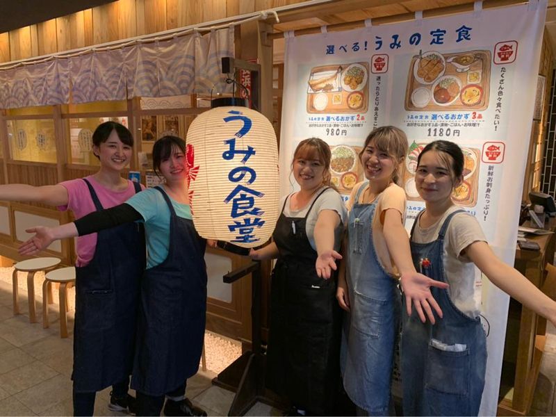 仕事内容 幸せ満点☆心も身体もホッとする食堂♪ 産地直送&地産地消にこだわり★ 長浜漁港のお魚&糸島野菜をしっかり活かします! 若手もベテランも積極採用 ご応募お待ちしております! 福岡PARCO本館B1Fに店を構える『うみの食堂』。 地下鉄空港線の天神駅、西鉄天神大牟田線の福岡(天神)駅など、各線から近い通いやすい場所にあります。 【約30種類の海鮮丼と選べるおかずで人気♪】 新鮮なお魚を使ったぷりぷりのお刺身と海鮮丼、 旨みが凝縮された魚の煮つけ、脂が乗った焼魚、 旨い魚と食べたい物を好きなように組み合わせて お召し上がりいただくのが当店メニューの特徴です。 当店の調理場はオープンキッチンです。 お客様の顔を直接見ながら業務に取り組むことができます。 お客様もスタッフも、いつも笑顔あふれる昔ながらのあたたかい雰囲気の食堂です。 ■□ 仕事内容 □■ ・調理業務全般 ・やる気と裁量により、料理長業務を順次お任せいたします。 調理場の指揮をとる責任者を目指して頂きたいと思っております。 ■□ 即戦力募集! □■ ・本格的な調理ご経験のある方 同業他業種も歓迎です◎ ぜひ当店でこれまでの経験を活かしてください! ■□ キャリアアップを目指せる職場 □■ 現在福岡では『うみの食堂 』『LA BODEGA』『みのりカフェ』『しみる』『てんぷらと肴 うみの』5店舗を運営しています。 来年春に更に新店をOPEN予定です! 中心メンバーとして活躍のチャンスあり! ゆくゆくは料理長→福岡エリア総料理長を目指すことも可能! あなたのキャリアアッププランを上司と一緒に考えながら成長できる環境です。 是非あなたの夢を一緒に叶えましょう!