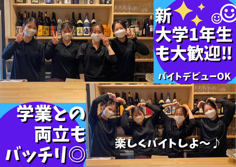 仕事内容 -ここがオススメ- スタッフ割あり 駅チカ 学生活躍中 - <仕事内容> 地元で水揚げされる海鮮やA5ランクの 黒毛和牛の肉料理を味わえる居酒屋です。 昼宴会から慶事や法事まで 幅広いシーンにご利用頂けるお店です。 ホール業務全般をお任せします。 STEP1 まず入社してからお願いすることは、 「あら萬」のことを知ってください! 一緒に働くスタッフと話したり、 メニューを覚えたり。 その後、お客様の帰った席の お片付けをしたりお料理や ドリンク提供を覚えていきましょう 「できるかな?」と心配しているあなた! 安心してください。 最初にできないのは当たり前! 先輩スタッフや社員が つきっきりでお教えします! 分からないことは、何回でも 聞いちゃってくださいね STEP2:おもなお仕事 ・店舗開店準備(簡単な清掃) ・ホールでの接客 ・料理提供 ・配膳 ・ドリンク作成 ・レジ業務 など ・キッチン補助 STEP3:将来的には ・新人アルバイトの研修 ・アルバイトへの指示・管理など 希望者はアルバイトリーダーとして 責任あるお仕事も任せることも可能です。 お店の特徴 敷や掘りごたつの個室や一人飲みでも お寛ぎいただけるカウンターをご用意。 昼飲みや家族の夜ご飯、顔合わせ、 還暦祝いの食事、宴会、接待など 様々なお客様にご利用いただいています。 昼宴会(完全予約制)は 少人数貸切の日もあります。 先輩から一言 【大学2年生 Aさん】 シフトの融通も利きやすく、学業や プライベートとも両立しやすい職場です。 私も含め、ほとんどの大学生が 飲食未経験からのスタートや バイトデビューが多いです。 一緒に働ける仲間募集してまーす。 愛知大学、技科大など在籍中の大学生多数 「食べるのが好き」「おいしいものを 探すのが好き」「お酒が好き」 「ワインについて覚えたい」など 食事・料理に興味がある方、大歓迎。 簡単な補助業務からはじめてゆくゆくは、 メイン料理も作れるまでに成長可能です。 将来にも役にたつスキルが身に付きますよ。 事業内容 飲食店 雇用形態 アルバイト・パート