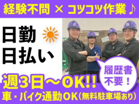 ゆっくり15時スタート◎未経験OK!シンプル作業で稼げる♪日払い可!安くておいしい食堂あり!