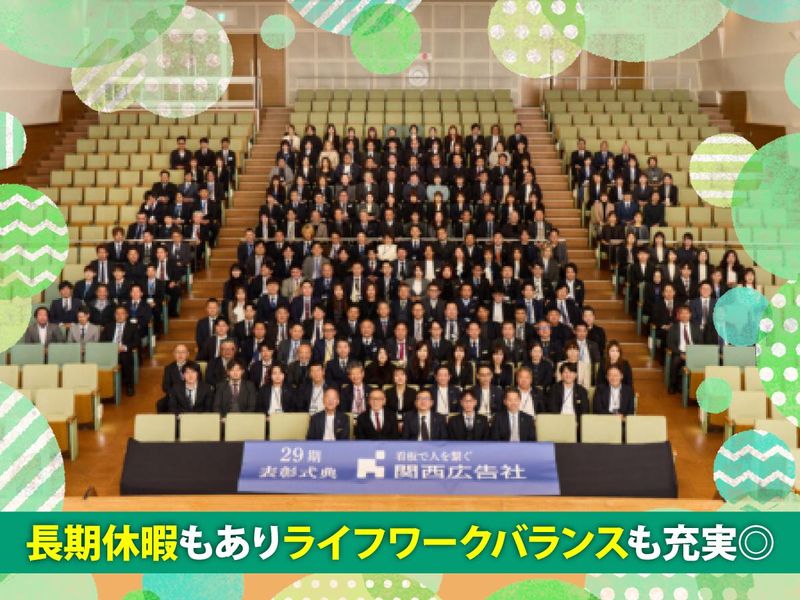 仕事内容 ―――――――――――――――――― 創業から毎年、純売上金額を更新中! 成長を続ける業界トップクラス企業で、 キャリアを築いていきませんか? ―――――――――――――――――― 屋外広告の分野で安定経営を続ける、 私たち関西広告社。 現在33の営業所を展開し、 全国6000社との取引実績があります。 毎年のように新拠点が誕生するなど、 現在も右肩上がりで成長中! 更なる事業拡大のため、 管理部門で増員募集を行います。 最初は営業活動をサポートする 事務作業からお任せしますが、 ゆくゆくは総務・労務など 管理部門の核となるポジションを 担っていただきたいと考えています。 既に経験がある方はもちろん、 これから管理部門でキャリアを築きたいという 未経験の方もぜひご応募ください。 会社の成長とともに、 あなた自身も成長していける環境です。 ================== 【具体的な業務内容は…】 ●資料作成 ●営業の売上管理 ●契約データ入力、確認 ●未入金管理 など *顧客への電話対応などはありません。 ●総務 ・車両管理 ・備品や消耗品の発注 ・電話、来客対応 など ●労務 ・勤怠管理 ・給与計算の補助 ・社会保険手続き など 全てを任せるのではなく、 お持ちのスキルや適性に応じて 活躍できる分野を担当していただきます。 <仕事は効率重視&成果に見合う報酬を> やるべきことを時間内に終わらせ、 無駄な残業はしないのが基本。 価値ある仕事を正しく評価することで、 社員の頑張りを後押ししています。 =========== ■当社関西広告社について =========== 広告の企画から制作、設置、メンテナンスまでを 一貫して行う屋外広告=看板の専門企業です。 営業エリアには当社が手掛ける看板が多数! 一見アナログな看板ですが、 リアルに目につくものですので 多くの人の記憶に残る現代でも有効なツールです。 信用調査会社の評点では中小企業の上位3%にランクイン。 安心して勤務していただけます。 【社内イベントも盛んな会社】 ・GW前のバーベキュー ・お盆前の納涼会 ・秋の収穫祭 ・テーマパークでの食事会 ・誕生日会 など、職種の垣根を越えての交流があります。 イベントの中には従業員の家族が参加できるものも。 参加はもちろん自由ですが、 みんな仕事を忘れて楽しんでいます♪ 【福利厚生も充実】 ★コーヒー無料 ★無料で無農薬のお米1~3キロを毎月支給 ★不定期で季節ならでは無農薬の野菜、果物を支給 ★お昼は炊き立てのお米が無料 ★おかずは無添加の社食サービス有 ┗1食100円か200円です。 100円でお腹がいっぱいになります◎