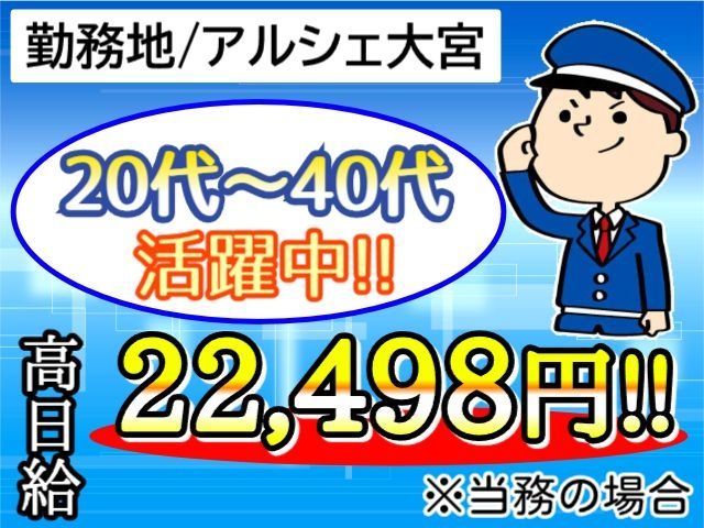 仕事内容 アルシェ大宮の警備アルバイト・パート求人募集 大宮駅より徒歩2分の駅近で通勤ラクラクです! 20代~40代の方が活躍しております。 ▼おすすめポイント▼ 〇未経験OK 〇月10日程度 〇シフトは提出制 〇高日給22,498円!(割増等含) 〇20代・30代・40代活躍中 〇直行直帰 〇制服貸与 〇正社員登用制度(実績有) 【仕事内容】 大宮駅西口のアルシェ大宮内にて施設警備業務をお任せします。 <具体的には…> ・駐車場の入り口のご案内 ・歩行者の誘導や安全確保など ・施設巡回 ・業者受付 特別な経験・資格は必要ありませんのでご安心ください。 各階を巡回していただくので、体力を活かして働きたい方にもおススメです! 【勤務について】 勤務は、月10日程度になります。 〇当務 時間/9:00~翌9:00(実働18時間・休憩6時間) 勤務/月10日程度 【こんなアルバイト経験活かせます!】 特別な経験・資格は必要ありません。 下記経験者は前職活かせます。 〇施設警備アルバイト・パート 〇イベント警備アルバイト・パート 〇警備員アルバイト 〇常駐警備員アルバイト 〇大学警備アルバイト ご不明な点等ございましたらお気軽お電話にてお問い合わせください。電話での応募もOK! ハローワークでお仕事をお探しの方にもおススメしております。 〇株式会社エヌテックサービス TEL/0120-45-1366(採用担当まで)