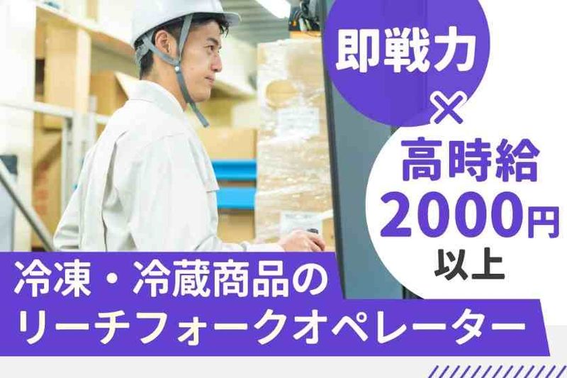 PRコメント ――――――この求人のPOINT―――――― ・高時給2000円!日勤でここまでのお仕事はレア! ・1日実8h+残業1.5h×週5日勤務でしっかり稼げる! ・完全週休2日、希望に合わせたシフト制でプライベートも充実 ・うれしい日払い・週払いもOK!急な出費にも対応可能! ―――――――――――――――――――― 【仕事内容】 冷凍倉庫・冷蔵倉庫内で 手作業やリーチフォークを使った入出荷のお仕事! 【お仕事内容】 フォークリフト乗車5:手作業5 ◆格納・仕分け <リーチフォーク作業> ・入荷商品(ケース)の仕分け ・パレットごと格納 ・冷凍倉庫から冷蔵倉庫へ商品を移動 ・冷蔵倉庫内で仕分け作業 <手作業> パレットへの積み替えなど ◆ピッキング <リーチフォーク作業> ・パレットに積み、出荷エリアまで運搬 <手作業> ・出荷指示書の通りにピッキング ===================== ※冷凍倉庫(約-20℃)冷蔵倉庫(約0℃)を 行き来しながらの作業となります。 ※冷凍倉庫内での作業は全体の4~6割程度です。 ◎防寒着を貸与しますので、防寒対策は万全! 体を動かす仕事のため、実際には寒さを感じにくい環境です。 ※扱う商品はアイスや冷凍・冷蔵食品などの加工品が約7割 (1点あたり5kg未満)。 そのほか、お肉・お魚など加工用の原材料も扱います (平均13kg、最大20kg程度)。 そのため、多少の力作業を伴います。