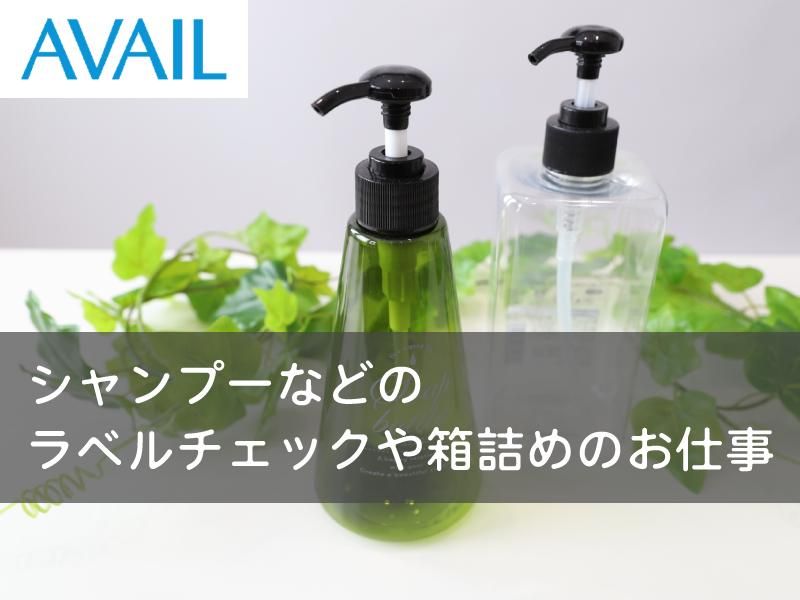 仕事内容 ≪採用拡大中の今がチャンス!!≫  ̄ ̄ ̄ ̄ ̄ ̄ ̄ ̄ ̄ ̄ ̄ ̄ ̄ ̄ シャンプーやハンドーソープなどの製造・販売を行っている医薬品・美容用品メーカー工場でのお仕事! 工場内は空調完備の快適な空間です。 シャンプーやハンドソープといったコスメ用品の箱詰め、チェック作業をはじめ、製造ラインの補助や出荷準備などもお願いします♪ 未経験から始めた人が多数活躍中です☆ 基本的に軽いモノばかりを扱っているので、身体への負担も少なく安心して長く続けてもらえます。 すべて1から丁寧にやり方をお教えしますので 検査や製造、工場、梱包などのお仕事が初めての方でも安心です♪ 経験者の方はもちろん大歓迎! また、 ◎コツコツもくもくと作業に取り組める方 にもオススメのお仕事です♪ * * * ■アヴェイルはあなたのライフスタイルに寄り添います 1)あなたに合った職種はもとより、勤務時間・就業期間をライフスタイルに合わせて選べます。 2)豊富な職種の中から、経験豊富なコーディネーターがあなたの適性を理解した上で、適切なアドバイスをいたします。 ■スキルアップも、経験を活かすも、何でもご相談ください 1)様々な企業や職場を経験することで、あなたのスキルに磨きがかかります。 2)専属コーディネーターとの入念な面談で、経験や能力を活かした仕事が選べます。 3)困った時には、専属コーディネーターがいつでも気軽に相談に応じますので、安心して就業できます。 ■各種支援制度あり 1)資格取得支援制度 派遣先での業務に必要な資格取得に向け、計画から受講機関の選定や予約等の手配、また費用面の助成等をバックアップします。 2)専門カリキュラムでさらにスキルアップ 現在の資格や経験を元に、更に上のハードルを目指している方にも、豊富なカリキュラムでさらにレベルアップを目指せるよう支援しています。