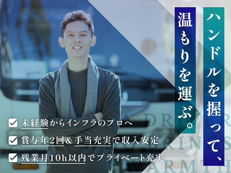 アピールポイント \/\/\/\/\/\/\/\/ 〇当社で働く魅力をご紹介〇 \/\/\/\/\/\/\/\/ 1|福利厚生が魅力 賞与や各種手当はもちろん、 産休・育休制度なども整っており ライフステージが変わっても 安心して長く働ける環境です! 2|未経験からプロのドライバーへ 入社後は座学や先輩との同行研修から スタート。準中型免許の取得も 会社が支援するので安心です♪ 3|働きながら国家資格を取得! 高圧ガス関連の資格取得をサポート! 講習や受験の費用も会社が負担。 一生モノのスキルが身につきます〇 \意欲や想いを重視した採用です/ 安全運転を心がけていただける方を 心よりお待ちしています! まずはお気軽にご連絡ください♪