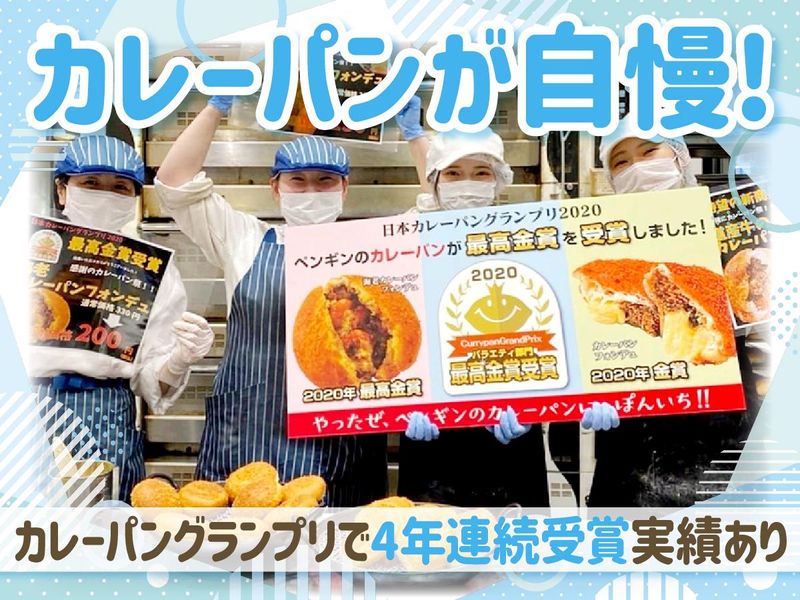 仕事内容 ✅パンや食好き集まれ!未経験OK! ✅日本カレーパングランプリ受賞! パンの作り方が一から学べる! ✅スタッフから好評♪ パンのまなかい・社割あり! 北海道産の素材にこだわった ベーカリーショップでの パンの製造と販売をお任せ! 具体的には・・・ ■製造 【パンの成型】 生地の発酵状態を見極め、 それぞれのパンの形に成型します。 お惣菜パンやサンドイッチ系、 菓子パンなどさまざまな種類のパンを作っています。 【オーブンで焼き上げ】 種類ごとにパンを焼いていきます。 厨房には2台のオーブンを完備し、 1日に80種類以上のパンを焼き上げます。 【キッチン】 カレーパンなどの 揚げ物パンを揚げる仕事もあります。 グランプリ受賞のカレーパンは 朝から数百個揚げることも! 揚げ物以外では、 名物のもちべえドーナツやバーガー、 サンドイッチの製造・トッピングを行い、 焼き上がったパンを仕上げていきます。 ■販売 お会計は現金または電子マネー決済! セルフレジを使用しているため、 スムーズで簡単に対応できます。 製造にも携わるのでパンの種類や値段が 覚えやすい♪ ―――――――――――――――――――― この仕事の魅力・・・ パン製造の全工程・全レシピを習得できる! ―――――――――――――――――――― 製造から販売まですべての工程に関われる! 接客含めパン屋の仕事を一通り覚えることが できるので、将来ベーカリーやカフェを 開きたい方には貴重な経験になります! 1つずつポジションの仕事を覚えていき 最終的には、すべての持ち場を 担当できるようになります。 スタッフのアイデアから 新しい商品が生まれることも! ―――――――――――――――――――― \ペンギンベーカリーのコンセプト/ 「北海道の大地で育った小麦を使い、 子どもからお年寄りまで 毎日食べていただけるパン屋さん」 ――――――――――――――――――――