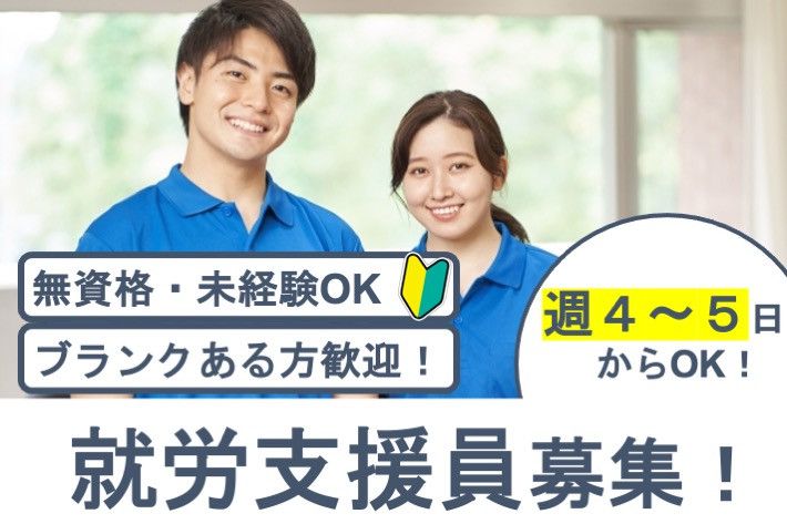 【アピールポイント】 障がい者の就労継続支援A型事業所の支援員のお仕事 ●週4〜5日からOK! ●無資格OK! ●未経験OK! ●Wワーク・副業OK!