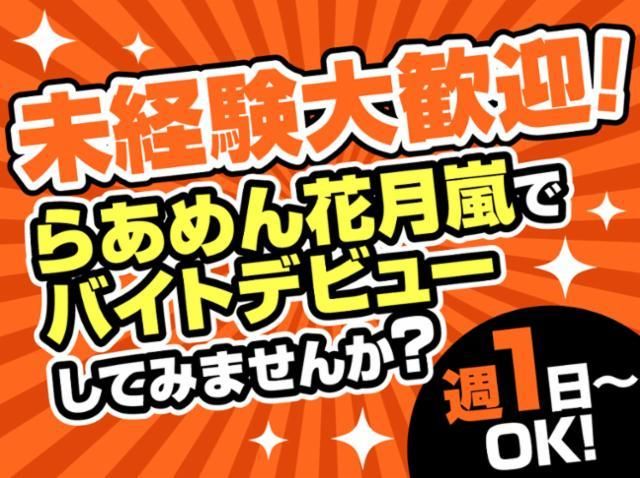 仕事情報 ● 仕事内容 ★☆★「らあめん花月嵐」で、一緒に働きませんか?★☆★ ラーメン店での接客および調理補助をお願いします。まずは元気 に「いらっしゃいませ!」が言えれば大丈夫!簡単な調理や盛り 付け、できあがった料理を運んだり、お水を注いだりetc... 難しい仕事は一切ナシ!どなたでも始められます◎ ラーメン大好き人間求む! ラーメン業界未経験でも、ラーメンに対する熱い想いがあれば OK!バイト自体初めての方でも、しっかりとしたマニュアルが ありますので、大丈夫です!まずはあなたのできること・簡単 なことからお任せしていきますので、安心してくださいね。 らあめん花月嵐のこだわり 一番人気の看板商品「嵐げんこつらあめん」を筆頭に、有名シェ フ・ラーメン店主やタレントとコラボした期間限定メニュー等、 思わず笑顔になる次世代型ラーメン店、それがらあめん花月嵐! 店内はどこか懐かしく、でも他とちょっと違う雰囲気。ラーメン をさらにおいしく食べられる工夫がちりばめられているんです☆ シフトは自己申告制! 自分の予定優先でOK!短時間勤務も相談に応じます♪ 平日のランチのみのパートさんや、夜だけ働く学生バイトさん、 独立を目指すフリーターさんなど、たくさんのスタッフが自分の 都合に合わせてイキイキとバイトしています! メリット盛りだくさん! 幅広い世代のスタッフが活躍しているらあめん花月嵐! 月1回登場する新メニューもいち早く試食できます◎ なので、ラーメン好きにはたまりません♪ 求人への応募が初めての方も大歓迎!居心地の良さバツグンの らあめん花月嵐で、私たちと一緒にバイトしましょう!