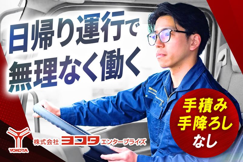 【仕事内容】 \大型ドライバー募集!経験者必見!/ 大型トラックとリフトの実務経験(1年以上)を活かした転職に。長きにわたりご活躍いただける環境でお待ちしています! ✅最短3日で勤務開始可能! ✅借り上げ社宅制度で生活基盤を安定! ✅プライベートも充実!長期休暇あり〇 ✅業務量が安定!需要高い配送業務 ✅月収約30万円~33万円 ▶▶Point 大手ECサイト物流部門やラストワンマイルを担う物流会社との直取引・定期便のビジネスを主に益々全拠点拡大に向け取り組んでおります。 ____________ ■具体的なお仕事内容■  ̄ ̄ ̄ ̄ ̄ ̄ ̄ ̄ ̄ ̄ ̄ ̄ 主に自動車部品の構内輸送していただきます。日帰り運行なので、毎日ご自宅に帰ることができます! 【使用車両】 ・10tウイング車 【取扱い荷物】 ▶配送物:自動車部品 ▶荷役方法: ・パレット積み中心 ・パレットの場合はリフトを使用 ・手積み手降ろしなし ※体への負担も少なめです! 【運行内容】 ▶運行形態:日帰り運行 ▶配送エリア:伊丹市 ※便の内容により若干変更の場合あり ===================== 長く安心して働ける理由があります! キャリアの選択肢・しっかり管理された制度 ===================== 社会保険や有給休暇、労働時間の管理など、基本の制度をしっかり整備。安心して長く働くために確認しておきたいポイントです! さらに、在籍のまま職種を変えられる「社内転職」制度も導入。 「もっと自分に合う仕事があるかも…」そんな想いがあれば、毎月の「ワークライフパートナー」との面談で気軽に相談できます。 腰を据えて働きながら、長期にわたる自分らしいキャリアを描ける職場です。 ===================== 運送業界はもちろん、 他業種からの転職者も多数活躍中! ===================== 【必須経験】 ・大型トラックの乗務経験:1年以上 ・フォークリフトの乗務経験:1年以上 経験を活かして、より良い環境で働きたい方に選ばれている職場です。 スタッフ同士助け合いが根づいた温かい雰囲気の中、腰を据えて長く働けます。 資材運搬や重機輸送、自社便ドライバーやイベント専属などからの転職にもオススメです! ================= ヨコタエンタープライズ ~社会のため、夢実現のため~ ================= 産業界の人手不足や後継者問題を解決し、日本、そして世界の明るい未来に貢献するため、成長し続ける企業を目指します。 幅広い製品を扱うことで景気に左右されにくい経営基盤を確立しており、現在では大型トラックを中心に250台の車両が運行しています。 また、社員の安心・安全が物流事業としての安心・安全につながるという観点から、Gマークの取得、的確な配車対応、全線高速道路の使用にも力を注いでいます。 一人ひとりが安心・安全に業務に取り組むことで、お取引先様の製品も早く安全に運べるように日々努めています。 【求人ID-KSD】