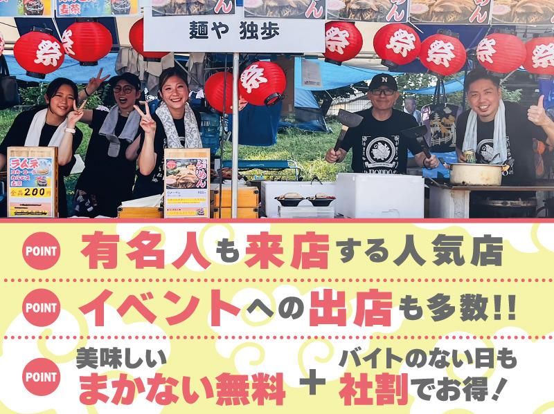 仕事内容 \ ランチは「主婦チーム」が大活躍中!/ 助け合いが当たり前の温かいお店です♪ 「子供が急に熱を出した…」そんな時も、 独歩なら大丈夫! 同じ境遇の主婦スタッフが多いからこそ、 お互いさまの精神でシフトをカバー し合える環境が整っています◎ 突然ですが… ╭━━━━━━━━━━━━━╮ ⭐ 独歩のいいところシリーズ! ╰━━v━━━━━━━━━━╯ ✅【その1】 「現場ファースト」な環境改善! -・-・-・-・-・-・-・-・-・-・-・-・-・-・-・-・-・- ベンチャー企業ならではのスピード感で、 スタッフの「働きにくい」を即解決! 「棚が高くて丼を置くのが大変…」 という声に応えて、現在厨房の リニューアルを計画中です。 ✅【その2】 未経験でも安心の「フラットな教育」! -・-・-・-・-・-・-・-・-・-・-・-・-・-・-・-・-・- 社員・アルバイトの垣根がなく、 お仕事は年が近い先輩が丁寧に教えます♪ 人見知りだったスタッフも、 周りのみんなの笑顔に影響を受けて、 今では自然な笑顔で接客を楽しんでいます! ✅【その3】 自慢したくなる「かっこいい制服」! -・-・-・-・-・-・-・-・-・-・-・-・-・-・-・-・-・- 身につけるだけで気分が上がる、 こだわりの制服を支給。 清潔感あふれるピカピカの店内で、 気持ちよく働けます。 ✅【その4】 「自分らしさ」そのままでOK! -・-・-・-・-・-・-・-・-・-・-・-・-・-・-・-・-・- 髪型・髪色・ピアス・ネイルも自由! 仕事中はゴム手袋を着用するので、 ネイルも楽しんだままでOKです♪ <お仕事内容>═════════ ▶笑顔でお客様をご案内 ▶食券のお預かり ▶こだわりのラーメンをご提供 ▶簡単な盛り付け補助や洗い物 ✋ 券売機スタイルなので、 オーダーミスやレジの不安はありません! ✋ 初めての方にも丁寧に教えます♪ まずは元気な挨拶から始めましょう☆ ════════════════ ✨ 嬉しい!助かる! まかない+スタッフ割あり  ̄ ̄V ̄ ̄ ̄ ̄ ̄ ̄ ̄ ̄ ̄ ̄ ̄ 働く日も、働かない日も、 お得に美味しいラーメンが食べられる特典つき! ⏩出勤日は… 自慢のラーメンが《無料》❗❗ ⏩さらに出勤日以外も… 従業員割引価格で食べられます❗❗ 「今日はバイトないけど、ラーメン食べたい」 そんな日も気軽に立ち寄れますよ♪ ✨~ 店主よりメッセージ ~  ̄ ̄V ̄ ̄ ̄ ̄ ̄ ̄ ̄ ̄ ̄ ̄ ̄ 「券売機のお店だから接客はそこそこで」 なんて、これっぽっちも思っていません! 当店は、本気で「接客日本一」の ラーメン屋を目指しています! そのためにはまず、働いてくれるスタッフが 「ここ最高!」と思える環境じゃないと ダメだと思っています。 だから、スタッフみんなの意見を聞いて やりづらい仕組みはどんどん変えています◎ あなたの意見もどんどん聞かせてください! ✨ 昭島店&拝島店で募集中  ̄ ̄V ̄ ̄ ̄ ̄ ̄ ̄ ̄ ̄ ̄ ̄ ̄ 昭島本店と拝島駅前店は自転車で15分ほどの距離。 「2店舗で1つの店」という感覚で 協力し合いながら運営しています。 そのため、「どっちの店舗も行くよ!」 と言ってくれるフットワークの軽い人が 入ってくれるとめちゃくちゃ嬉しいです! あなたのご応募を、心よりお待ちしています!