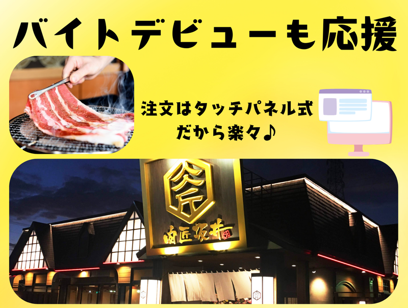 仕事内容 【新着】焼き肉食べ放題のお店で スタッフ大量募集☆ ・――――――――・・――――――――・ 国産牛食べ放題の人気焼き肉店 『肉匠坂井 周南店』 <周南市大内町/マイカー通勤OK> ・――――――――・・――――――――・ | 週2日以上、1日3H~OK! | 週末のみ勤務も歓迎! | 時給1150円~ ※高校生は時給1050円 | 扶養控除内勤務可/副業・WワークOK | 制服あり/正社員登用制度あり ・――――――――・・――――――――・ *『肉匠坂井 周南店』とは?* ━━━━━━━━━━━━ 当店は、国産牛を心ゆくまで 楽しめる食べ放題焼き肉店。 注文はタッチパネル式で、接客もスムーズ。 学生さんからファミリーまで幅広い お客様に愛される人気店です。 「また来たい!」と思っていただける お店づくりを目指し、 スタッフみんなで協力しながら 働いています。 *仕事内容* ━━━━━━━ <<ホール業務>> *お席へのご案内 *オーダーテイク(タッチパネル補助) *料理の提供/ドリンク・ デザートの配膳 *お会計・お見送り *テーブルセッティング・ 片付け・清掃 注文はタッチパネルオーダー&QRコード 決済対応なので、レジ業務の負担も 少なく、スタッフからも 「働きやすい」と好評です。 ☆配膳ロボットもお手伝いしてくれますよ♪ マニュアルも完備しているし 未経験でも丁寧にサポートしますので 安心してスタートできます。 *働きやすさ抜群!助け合いの風土* ━━━━━━━━━━━━━━━━━ 学生さん(高校生さんも)やWワークなど 幅広く歓迎! 勤務開始日は相談可能。学歴不問・ 男女不問。 *魅力的なポイントをご紹介* ━━━━━━━━━━━━━━━━ ◎<あなたの働き方を最優先> 1日4時間以内の短時間勤務もOK! 週末だけの勤務も可能で、 プライベートと両立できます。 ◎<待遇充実> 制服あり、まかない補助あり。 正社員登用制度もあり、 長期的なキャリアアップも 目指せます。