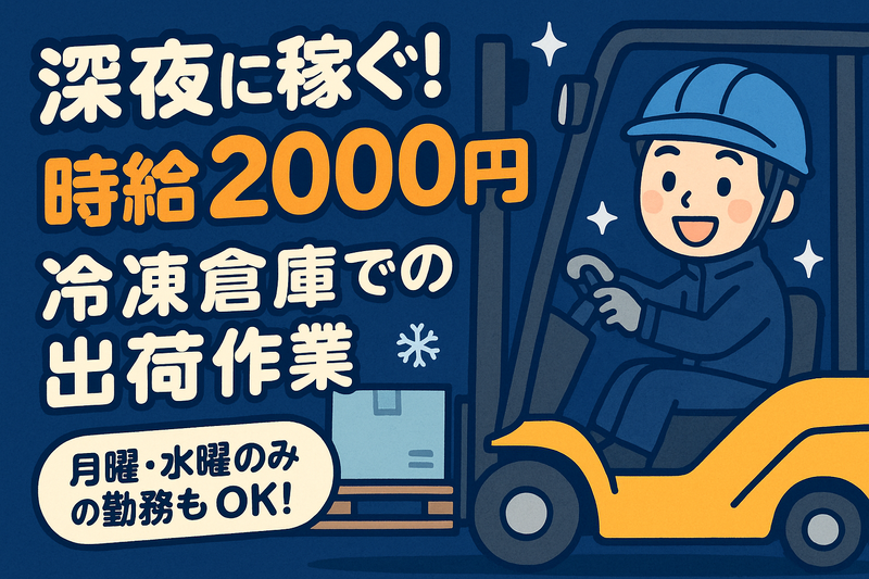 仕事内容 夜勤専属の高時給で稼げたい方におすすめ! 新しい綺麗な施設内でのお仕事です! 食品を扱う冷凍・冷蔵倉庫内で商品の入出庫作業をお願いします。 使用するのはリーチ式のフォークリフトです。 資格や経験を活かしてWワークで稼ぎたい方もにもピッタリ♪